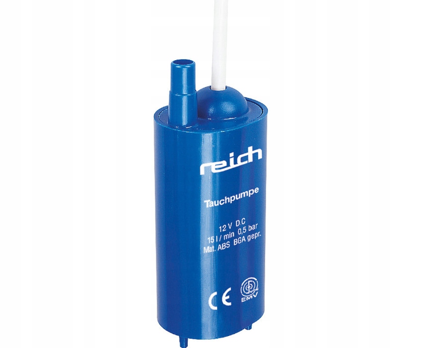 Wysokiej jakości, cicha podczas pracy, łatwa w zamontowaniu pompka zanurzeniowa renomowanej firmy Reich przeznaczona do czystej wody. Pompka przeznaczona jest do użytku na kempingu (do umywalek oraz kabin prysznicowych) w przyczepie kempingowej, kamperze, jachcie. Prosty montaż. Charakteryzuje się bardzo cichą pracą.