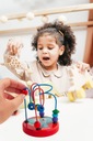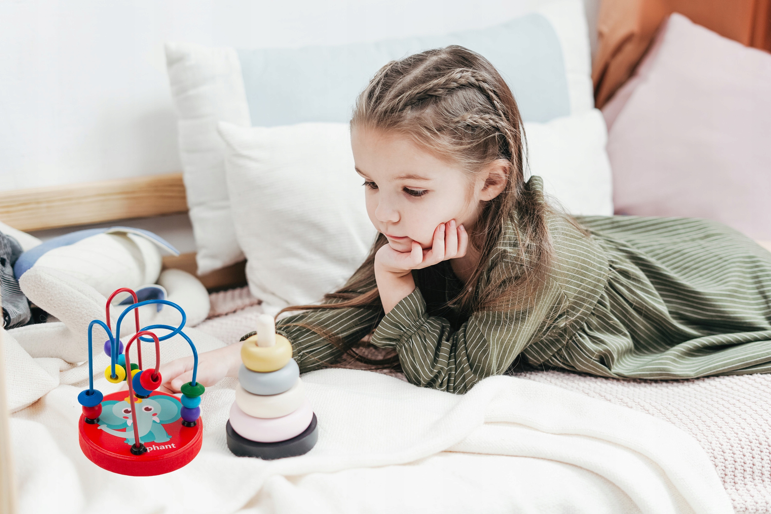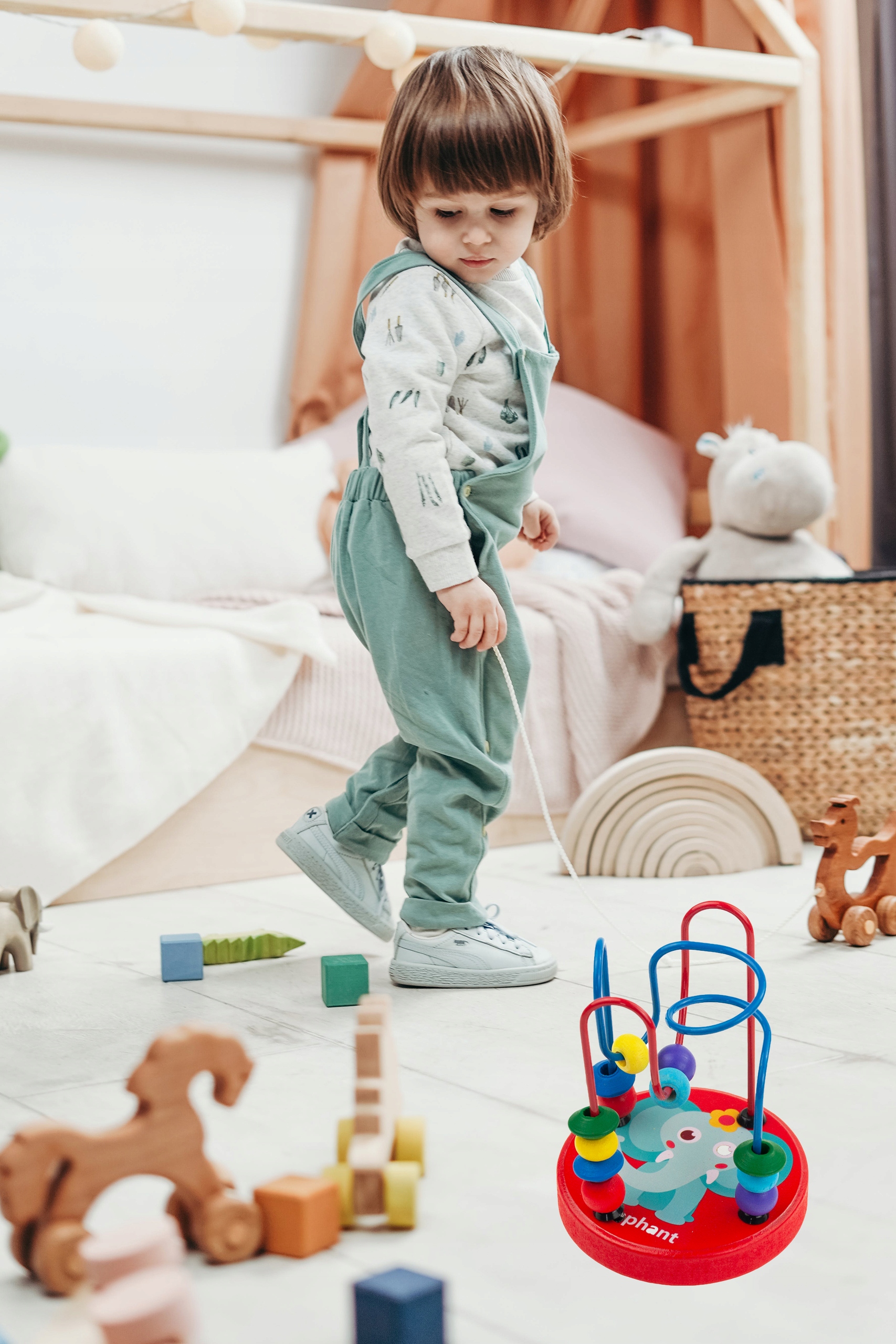 ✅ Na metalowych kolorowych prętach znajdują się piękne drewniane koraliki, którymi dziecko może przesuwać w dowolny sposób, ćwicząc przy tym precyzję ruchów palców i dłoni.