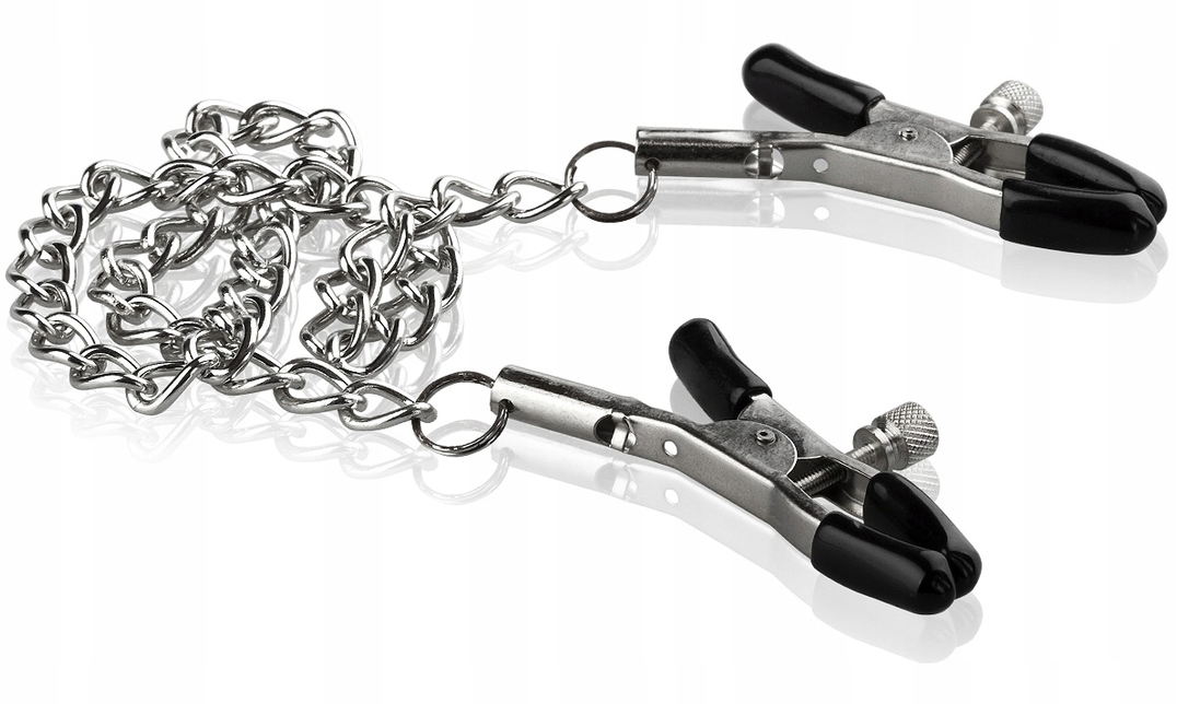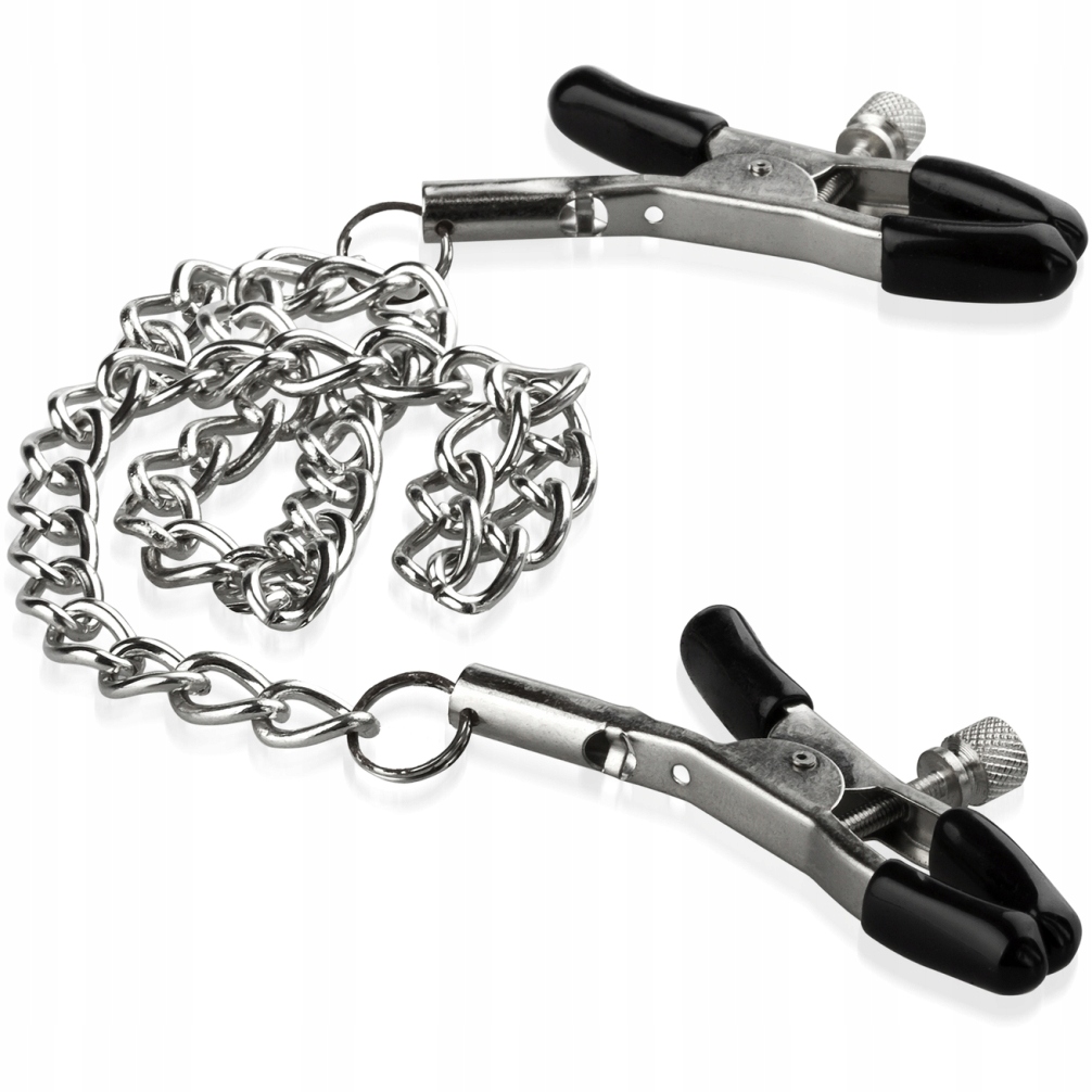 Супер цепочка с зажимами для сосков. Цепочка длиной 24 см с каждой стороны специальные застежки. Зажимы имеют регулировку давления. Продукт для женщин или мужчин, которые хотят откройте для себя новые ощущения в эротике.