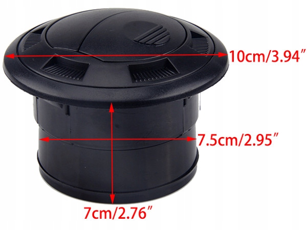 Wylot z klapkami o średnicy przyłącza 75mm służy do dystrybucji powietrza w układach klimatyzacji, wentylacji i ogrzewania w pojazdach typu samochody, busy, autobusy, łodzie. Ze względu na wysoką tolerancję temperatury do 120°C dyfuzor ten idealnie sprawdza się w powietrznych ogrzewaniach postojowych Webasto, Eberspacher, Planar i innych.