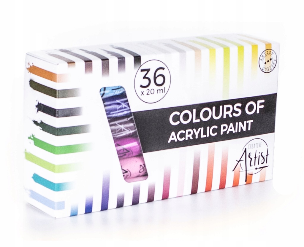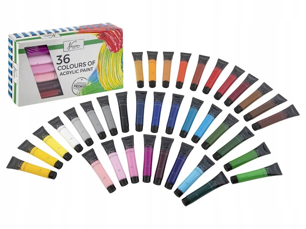 Набор акриловых красок высшего качества, состоящий из 36 уникальные, привлекательные яркие цвета. Позволяет создавать произведения искусства, которые они отличаются уникальными и выразительными оттенками.