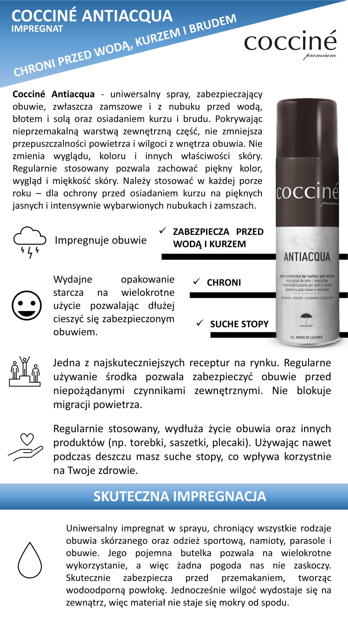 ?Poleca się również do zabezpieczania butów zamszowych, tekstylnych i nubukowych przed osiadaniem kurzu i brudu.