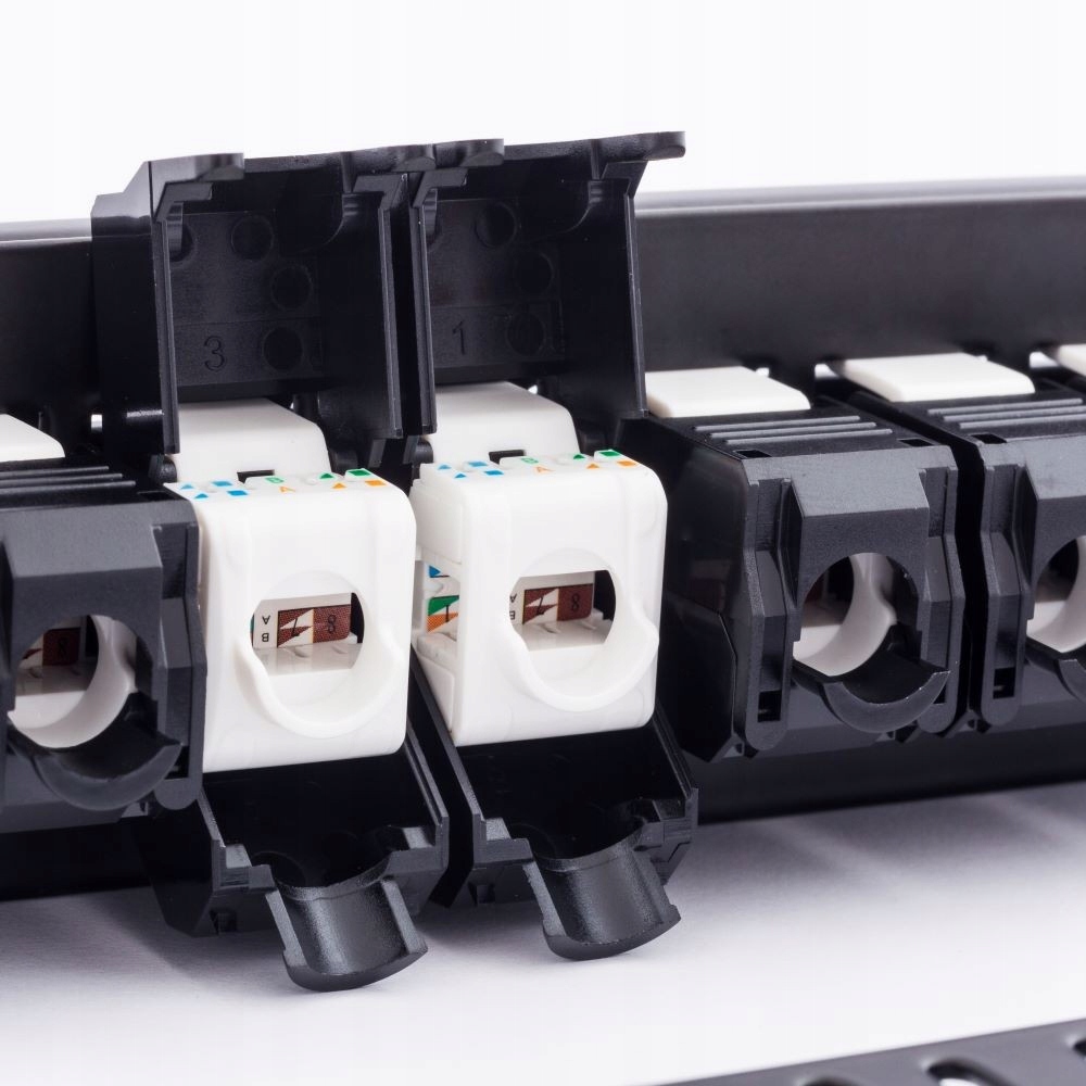 Network Patch Panel Keystone Jack RJ 45 posiada z tyłu obudowy złącza beznarzędziowe. Do ich zarobienia można też użyć noża typu Krone. Złącza oznaczone są kolorami dla typów połączeń TIA 568A i TIA 568B. Zapewniają najwyższą jakość pracy dla >300 cykli instalacji. Kompatybilne ze wszystkimi popularnymi standardami kabli sieciowych (np. CAT5e, CAT6, CAT6A, CAT7). Najlepszy efekt uzyskuje się przy użyciu patchcordów tej samej kategorii, co urządzenie lub wyższej. Możliwe jest stosowanie przewodów 22-26AWG.