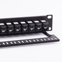 Network patch panel posiada złącza RJ45. Styki złącz są pozłacane. Zapewniają najwyższą jakość pracy dla >1200 cykli. Urządzenie zapewnia szybkie i niezawodne podłączenie urządzeń do sieci komputerowej. Gniazda są kompatybilne ze wszystkimi rodzajami patchcordów zakończonych wtykami RJ45 (np CAT5E, CAT 6, CAT 6A, CAT7). Najlepszy efekt uzyskuje się stosując patchcordy tej samej kategorii, co urządzenie lub wyższej.