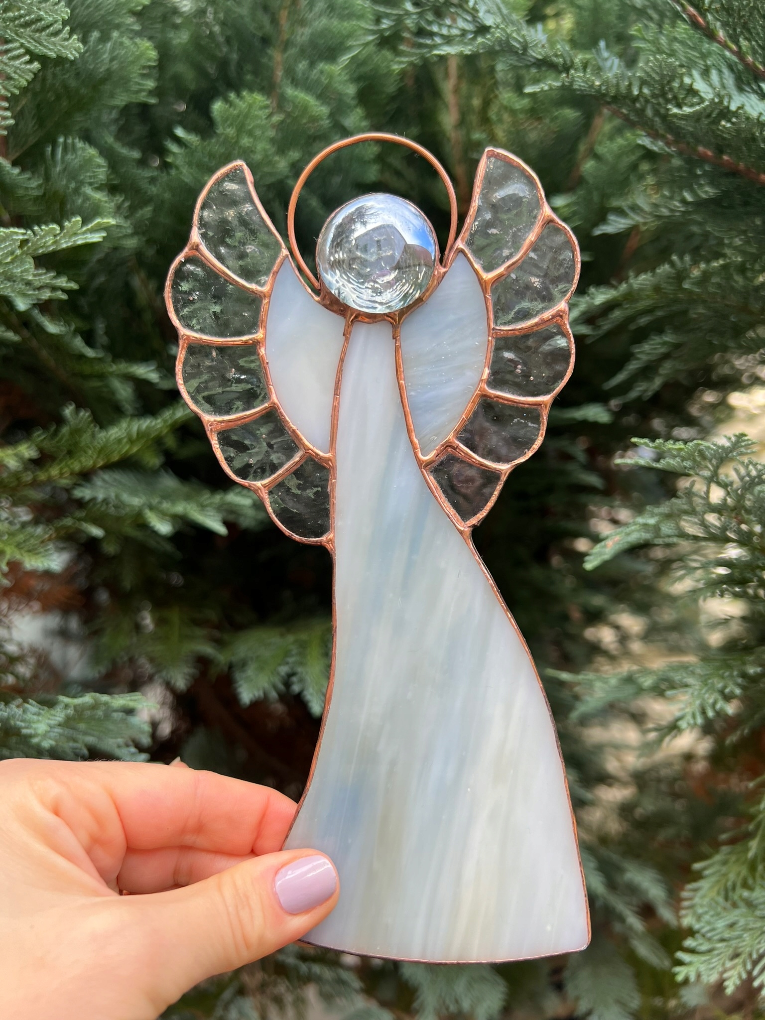 Przedstawiamy naszego witrażowego anioła pięknej i pełnej harmonii ozdoby, która doda uroku i spokoju Twojemu wnętrzu. Wykonany z pasją i starannością w naszej rodzinnej pracowni, ten witrażowy anioł to wyjątkowy symbol delikatności i piękna.