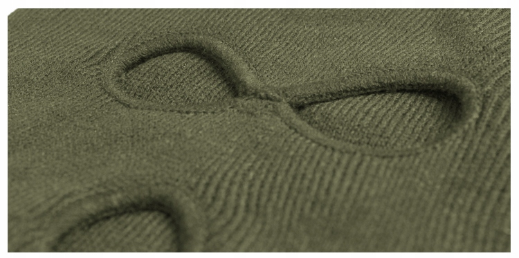 Zastosowane szwy są miękkie i elastyczne, składający się na komfort noszenia. Trzy otwory pozwalają na utrzymanie dobrej widoczności, jedzenie i picie bez konieczności zdejmowania kominiarki. Po złożeniu może funkcionować jako czapka.