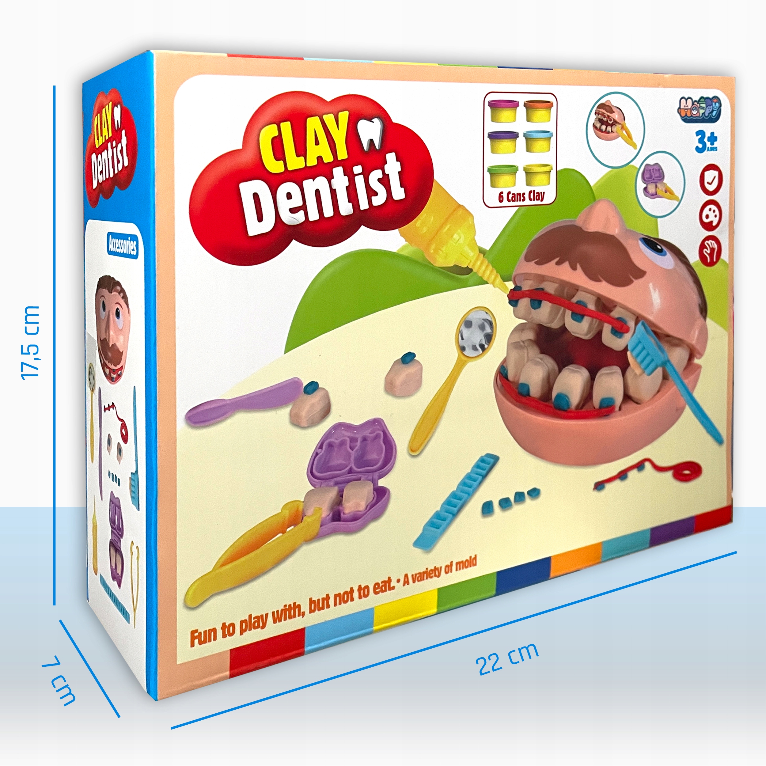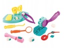 Zestaw zawiera narzędzia, słoiki z masą modelarską oraz przyrządy medyczne, co pozwala na różnorodne scenariusze. Dziecko może wykonywać zabiegi, zakładać plomby, przeprowadzać badania i wiele więcej.