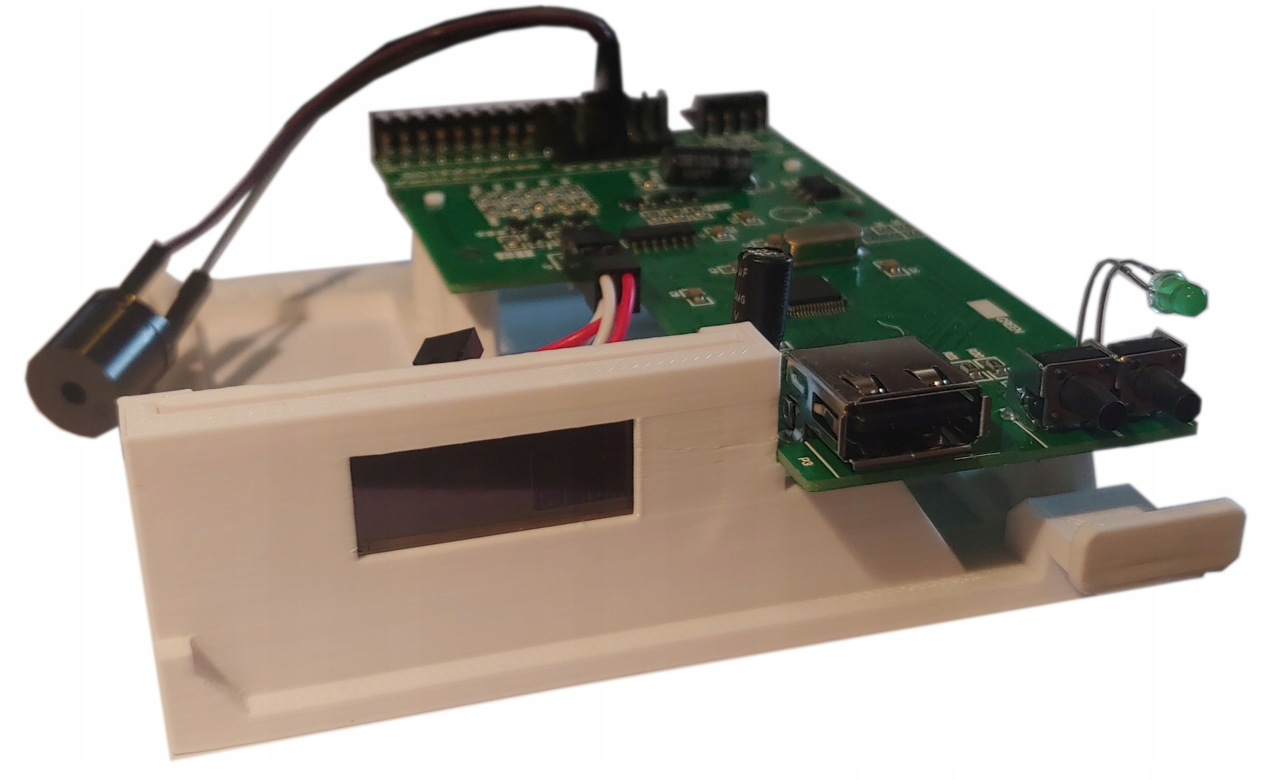 Установлен Gotek на специальной монтажной раме для Amiga 500. Дисплей OLED в диагонали 0.91" (128x32), монтажные прокладки и зуммер (который имитирует звуки, издаваемые через головку станции).