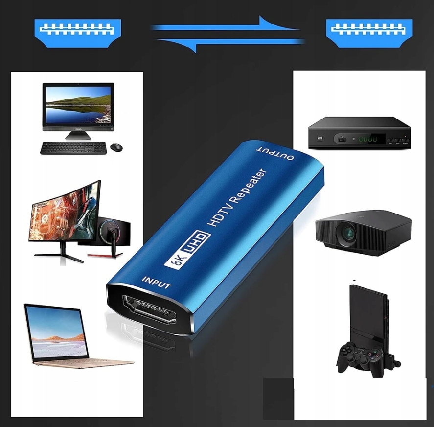 Regeneruje przychodzący sygnał HDMI przez dekodowanie i ponowne kodowanie go do nowego standardu sygnału HDMI, dzięki czemu może przedłużyć zasięg transmisji bez degradacji. Rozszerza sygnał nawet w 8K (7680 x 4320 p) do transmisji na odległości do 25 metrów (niższa rozdzielczość sygnału może być przesyłana dalej).