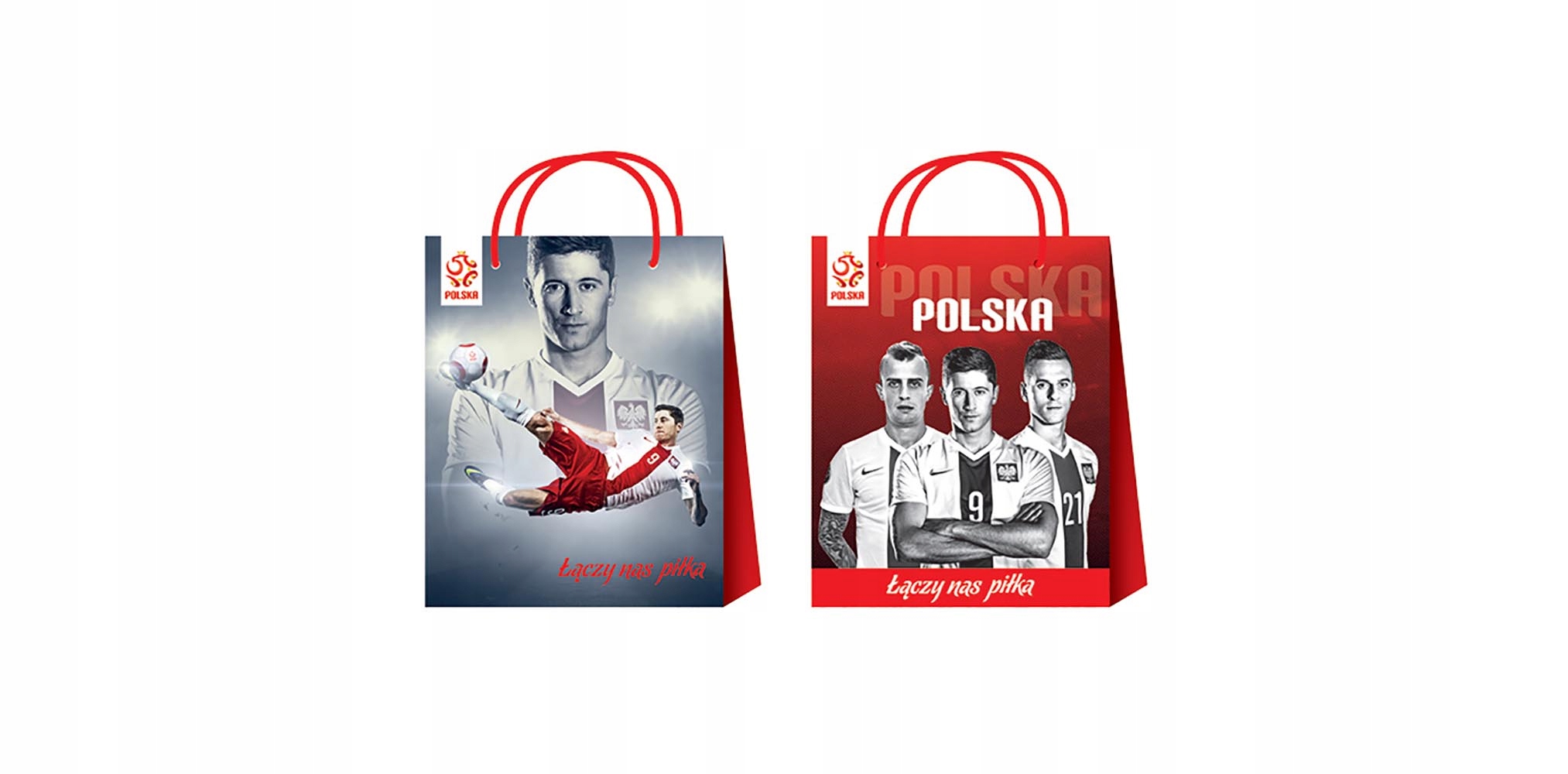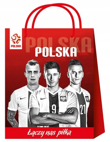 Torebka upominkowa mała z wizerunkami piłkarzy reprezentacji Polski - m.in. Lewandowskiego, Milika i Grosickiego.