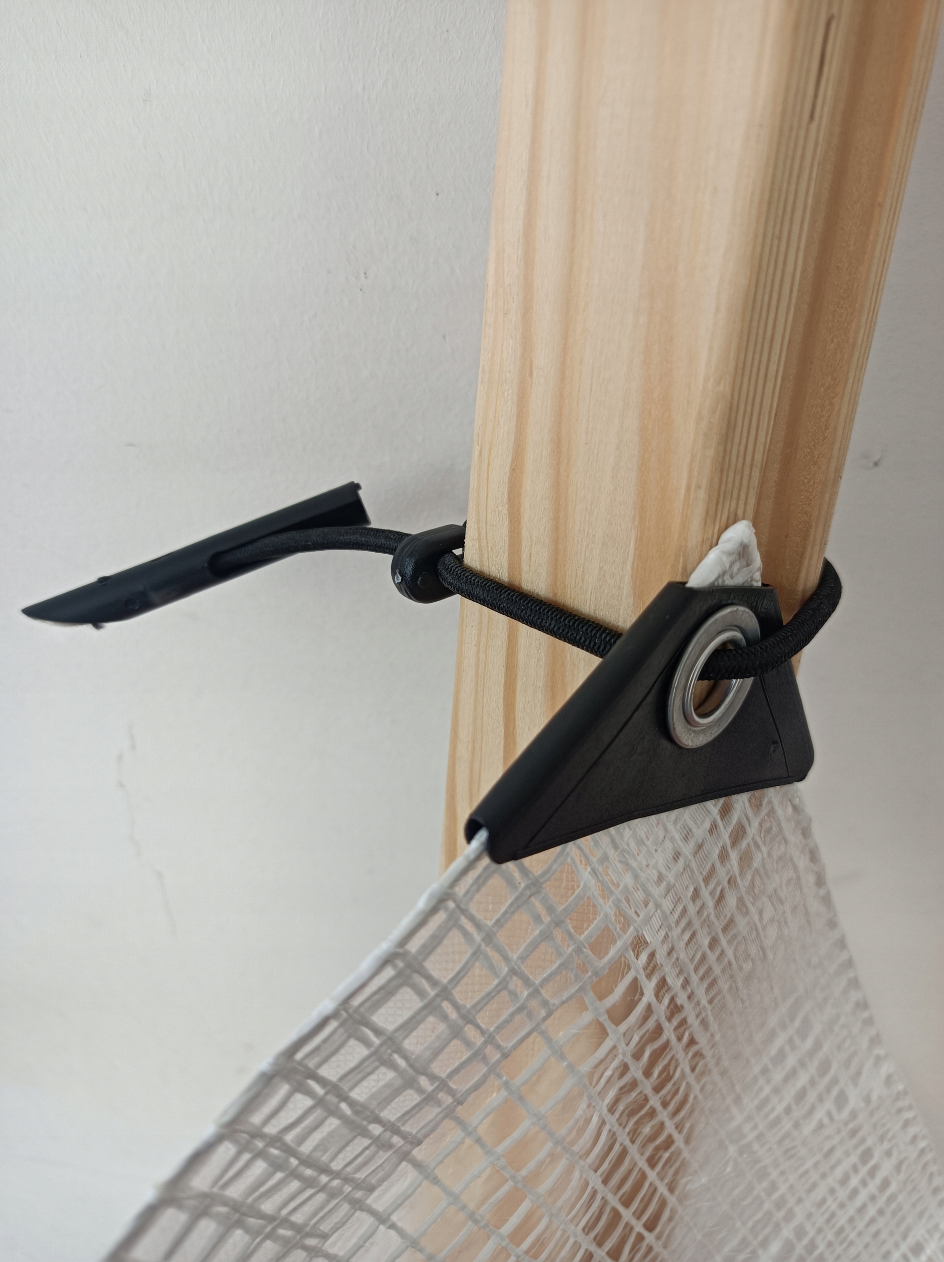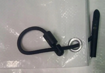 Elastyczne zaczepy wykorzystywane są do mocowania zbrojonych folii oraz plandek rusztowaniowych. Jeden z końców zaczepu, ostro zakończony, służy do przebijania otworów (oczek) w taśmach montażowych. Drugi koniec posiada haczyk do mocowania folii lub plandeki na rusztowaniu. Elastyczność zaczepów znakomicie przedłuża okres użytkowania plandek (zapobiega wyrywaniu oczek metalowych jak i przedzieraniu folii).