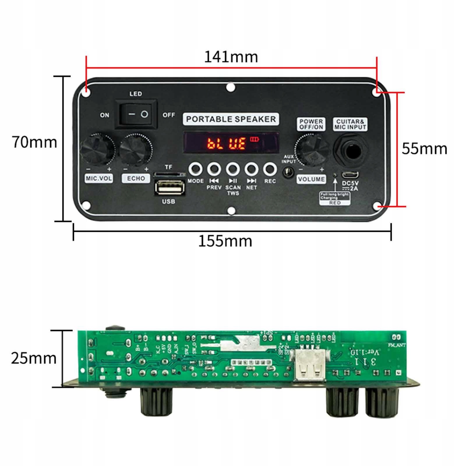[Płyta Bluetooth MP3]: Płyta Bluetooth MP3 obsługuje kabel i mikrofon; obsługuje karty TF, obsługuje USB, obsługuje wejście LINE IN zewnętrznego źródła dźwięku, obsługuje radio i pasmo częstotliwości wyszukiwania (87,5 MHZ-108,0 MHZ).