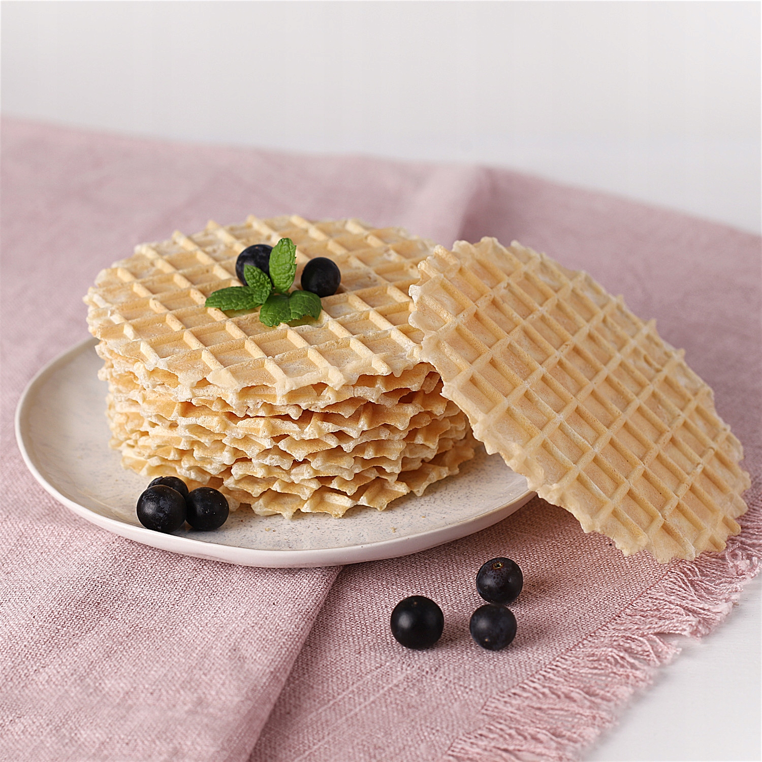 Gofry bezcukrowe to chrupiąca i z uwagi na krótki skład i brak cukru w składzie - dietetyczna przekąska. Doskonała dla osób na diecie i małych łasuchów. Świetnie smakują na słodko z ulubionymi dodatkami np. dżemem, owocami lub na wytrawnie z pastą warzywną i plasterkiem szynki.