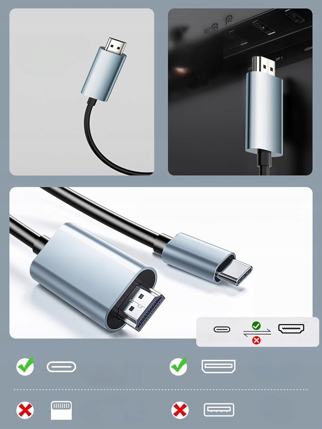 Кабель работает только в одну сторону, с USB C на HDMI