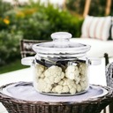 Szklany garnek nadaje się do mycia w zmywarce i używania w kuchence mikrofalowej.