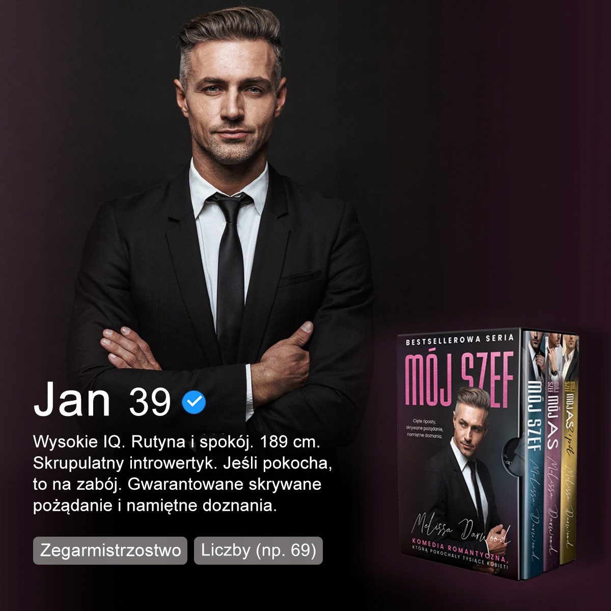 Romans biurowy, jakiego jeszcze nie było! Gorące sceny, humor i bohaterowie, których nie da się zapomnieć. Seria MÓJ SZEF rozpali Twoje zmysły, rozmiękczy serce i rozbawi Cię do łez.