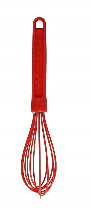 Silikonowa trzepaczka Flexxibel Love marki DR OETKER o długości 25 cm. Jest bezpieczna dla żywności, odporna na kwasy owocowe i temperatury w zakresie od -40°C do +230°C. Posiada ergonomiczny i antypoślizgowy uchwyt, który wygodnie leży w dłoni. Nadaje się do stosowania w naczyniach z powłoką zapobiegającą przywieraniu. Na końcu uchwytu znajduje się otwór do zawieszenia ułatwiający przechowywanie. Można ją myć w zmywarce.