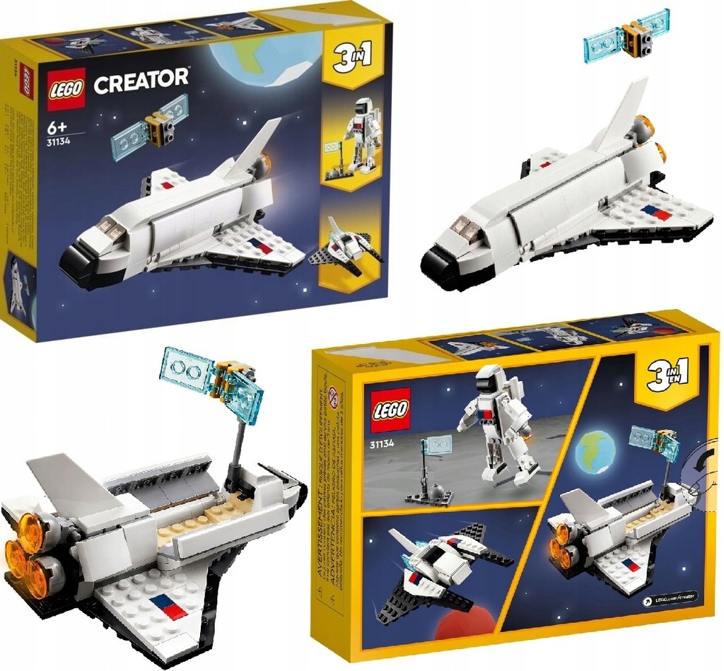 В этом наборе LEGO Creator 3-в-1 Есть три разных модели. Таким образом, вы можете создать космический шаттл, а затем перестроить его в движущуюся фигурку астронавт с реактивным ранцем и флагом, чтобы засорить планету или построить впечатляющий модель корабля космический корабль.