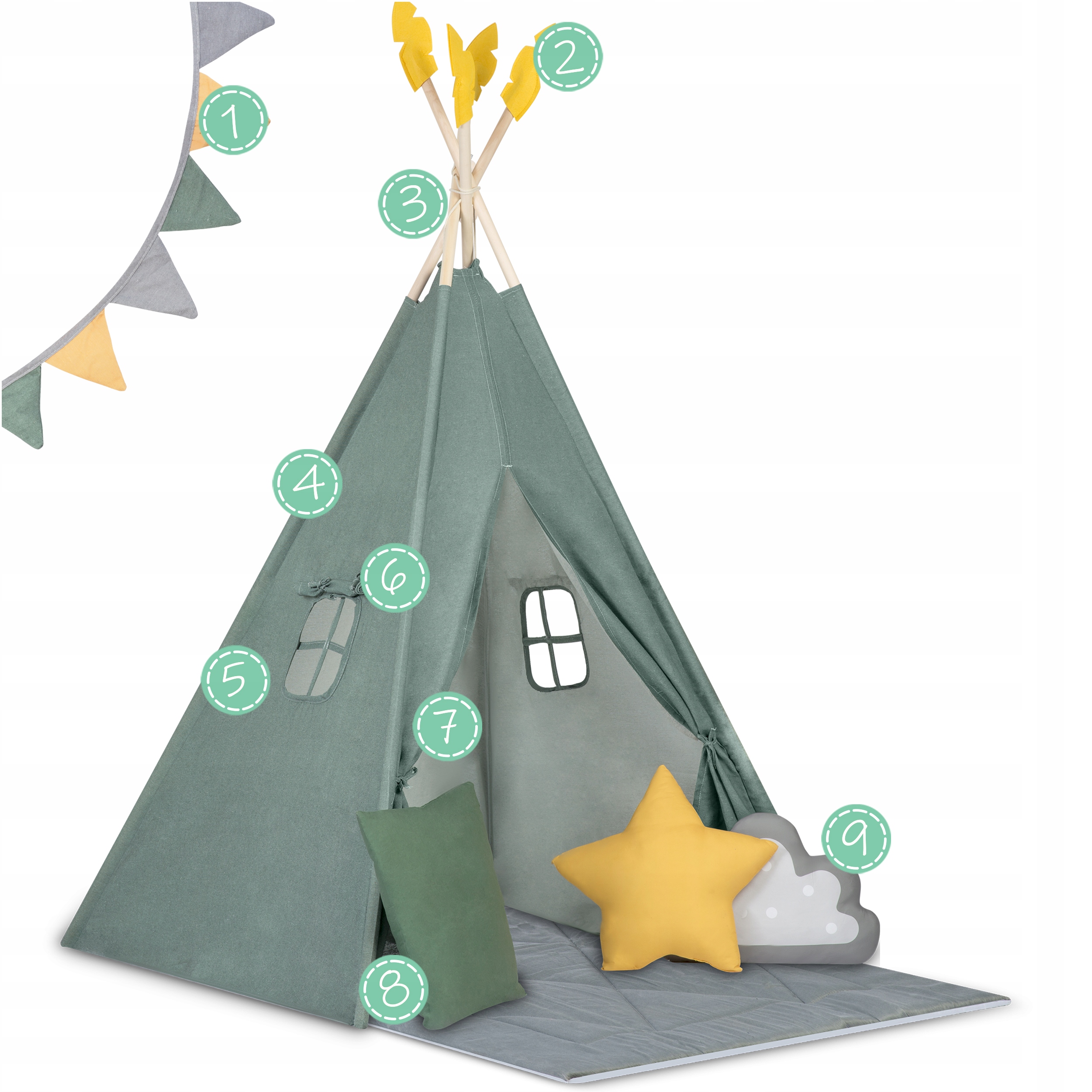 Высокая плотность стен 175 г / м2 гарантирует, что типи чрезвычайно мягкий, прочный и готовый к самым интересным детским приключениям.