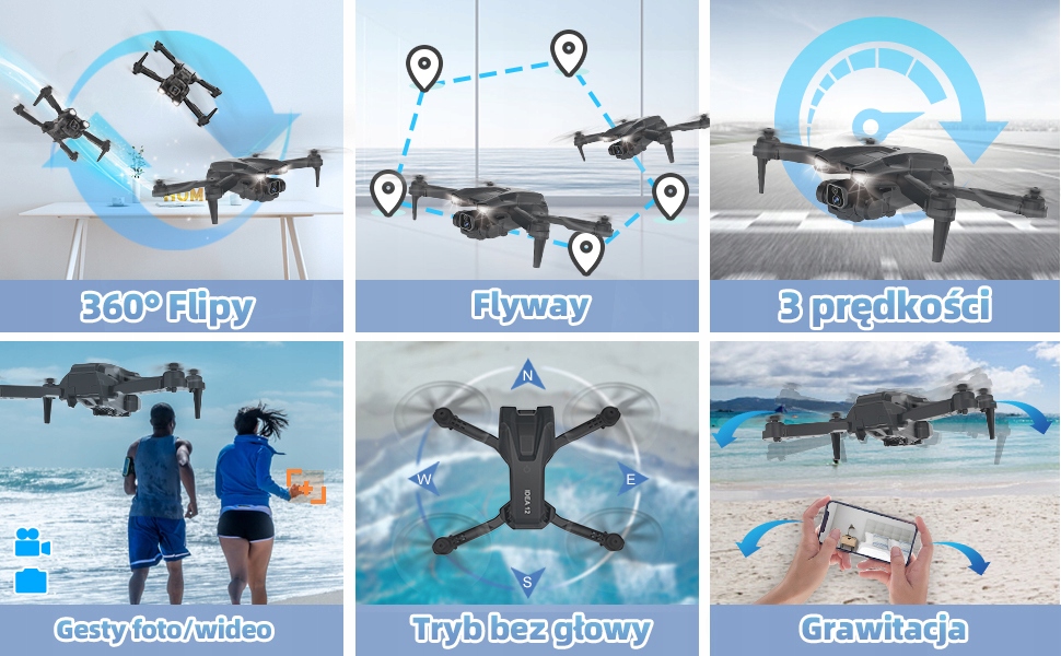 ✔️Gestowe zdjęcia/wideo: Wystarczy machnąć ręką, aby dron automatycznie uchwycił piękne chwile! Funkcja robienia zdjęć/wideo gestem zapewnia wygodę, dzięki której nie przegapisz żadnych radosnych chwil.