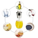 Stylowa butelka na olej, ocet i inne płynne przyprawy z eleganckim, szklanym wykończeniem i plastikowymi elementami doskonale komponuje się z każdą kuchnią. Idealna do codziennego użytku oraz na specjalne okazje, sprawia, że kuchnia wygląda nowocześnie i schludnie.