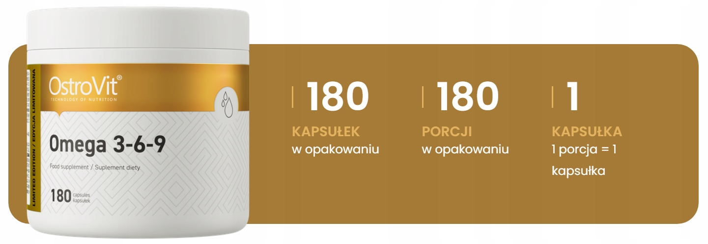 Omega 3-6-9 Ostrovit to suplement diety, który stanowi źródło cennych nienasyconych kwasów tłuszczowych omega-3, a także omega-6 i omega-9, a dodatkowo dostarcza do organizmu witaminę E.