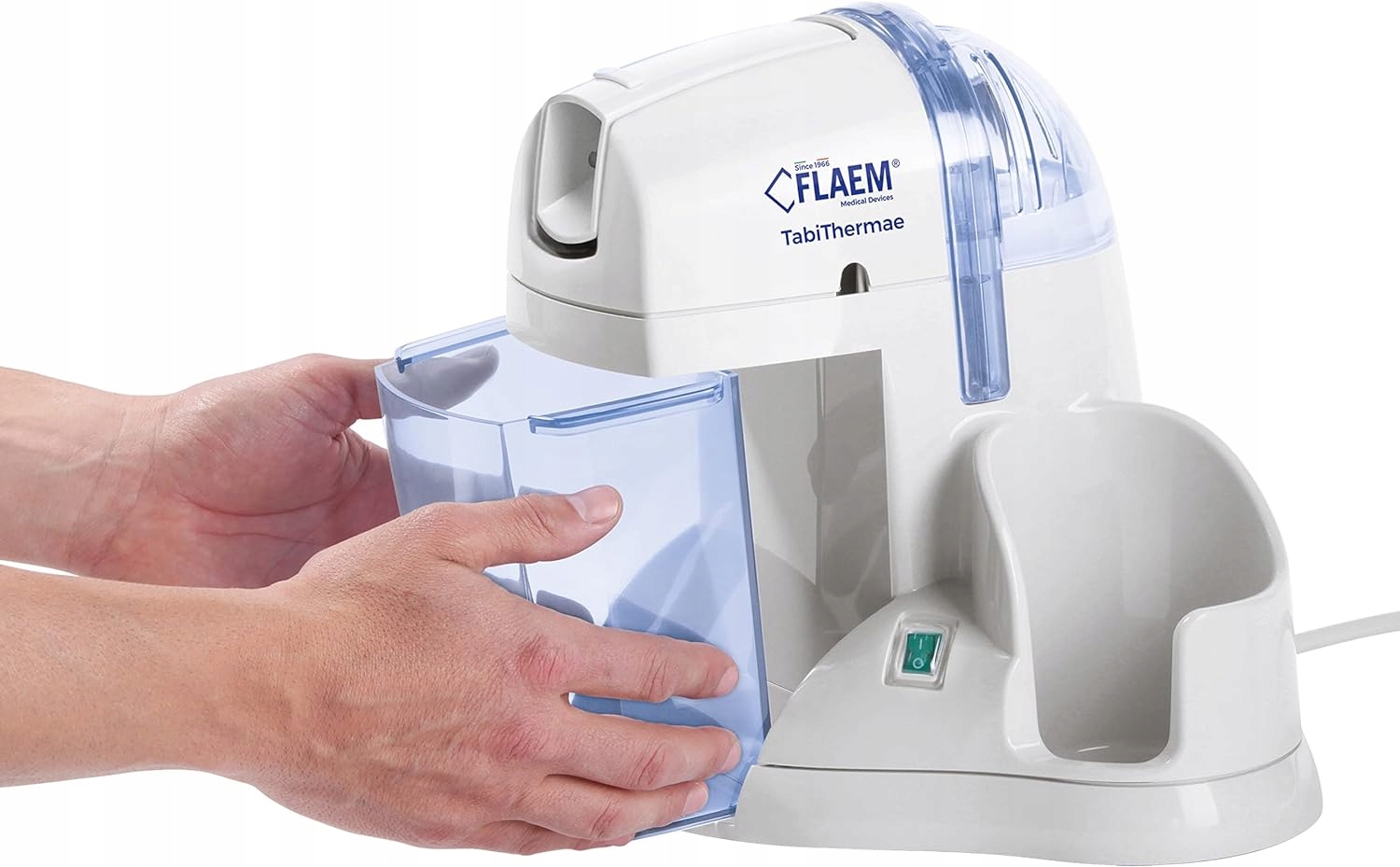 Inhalator termiczny Tabi Thermae nadaje się do zabiegów w domu. Umożliwia do dwóch ciągłych zabiegów po jednym litrze. Jest prosty w użyciu i szybki, rozpyla jeden litr wody termalnej w około 10 minut.