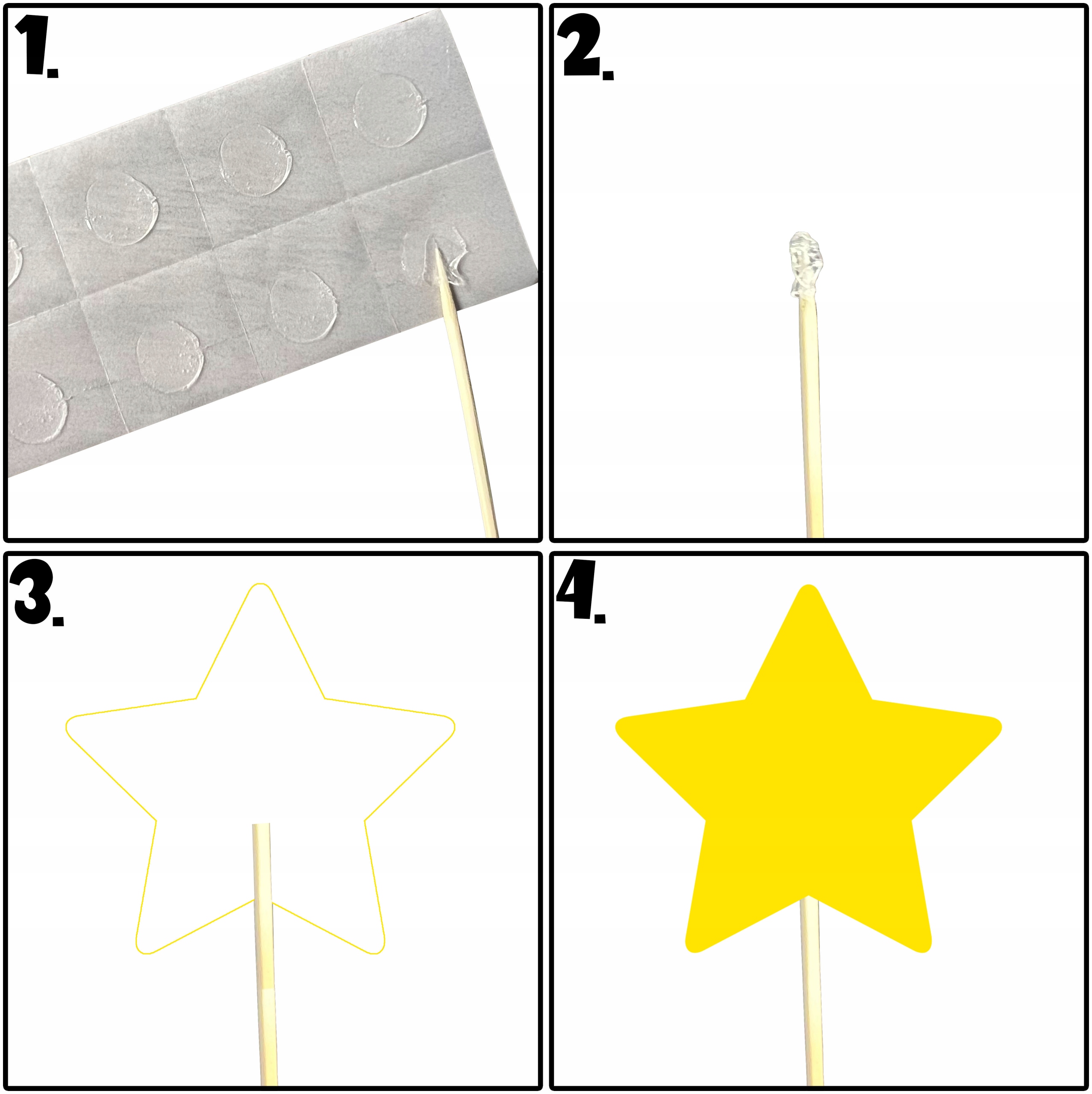 2️⃣ Przyklej kropkę klejową w miejscu gdzie ma być przymocowany patyczek bambusowy