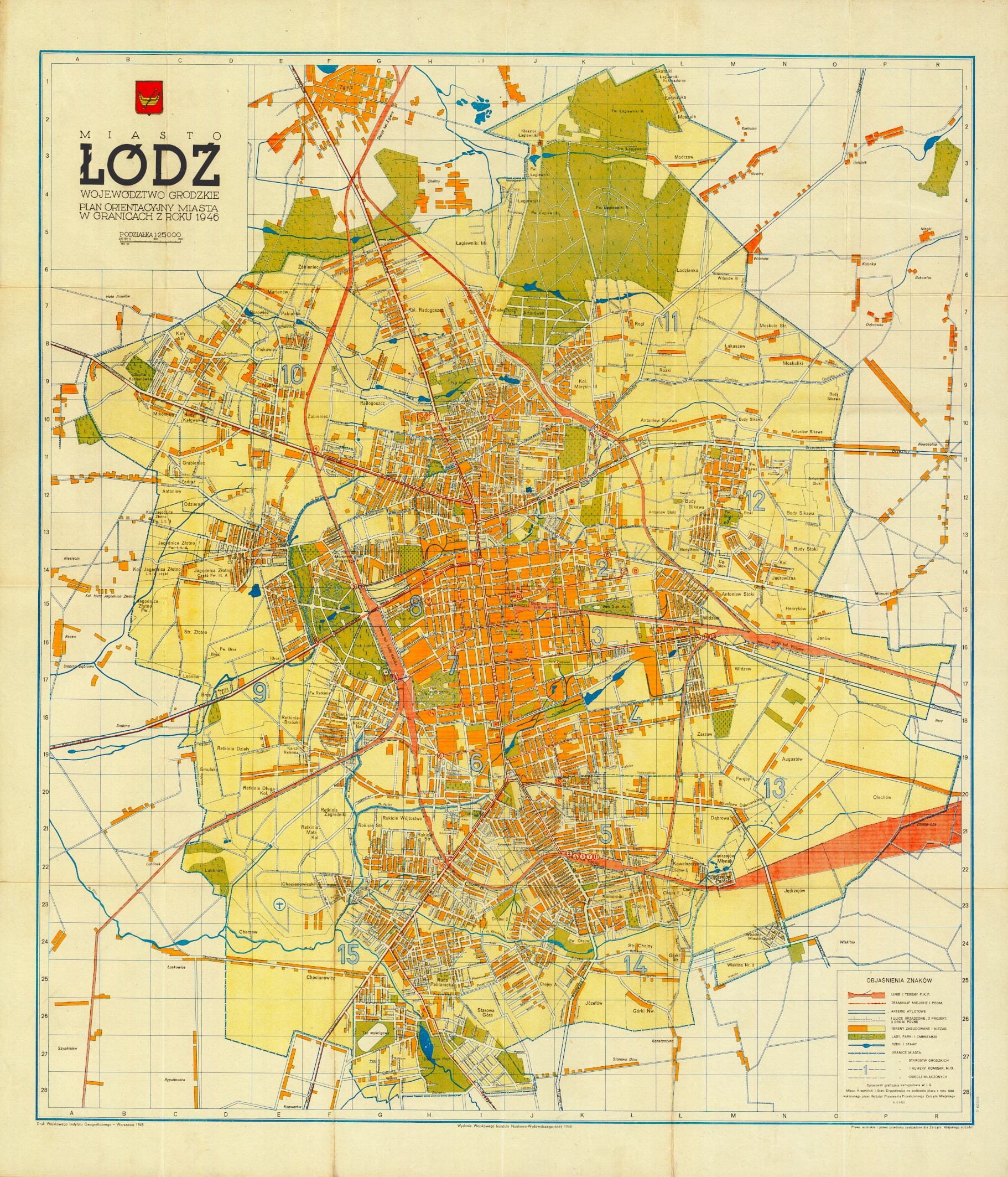 Stary plan ŁÓDŹ 1946r. 70x60cm