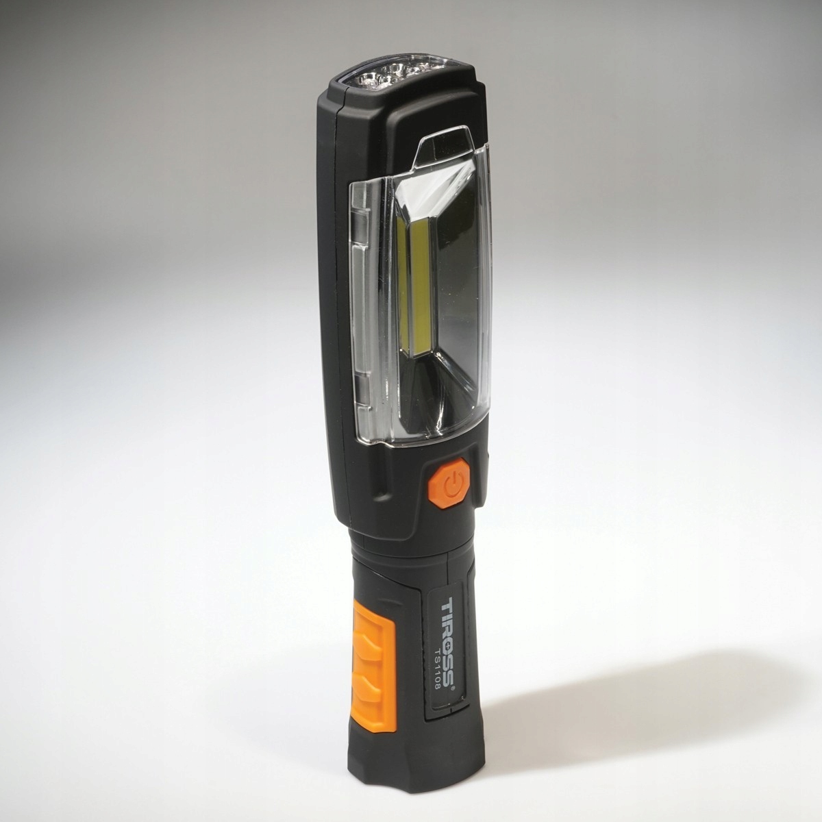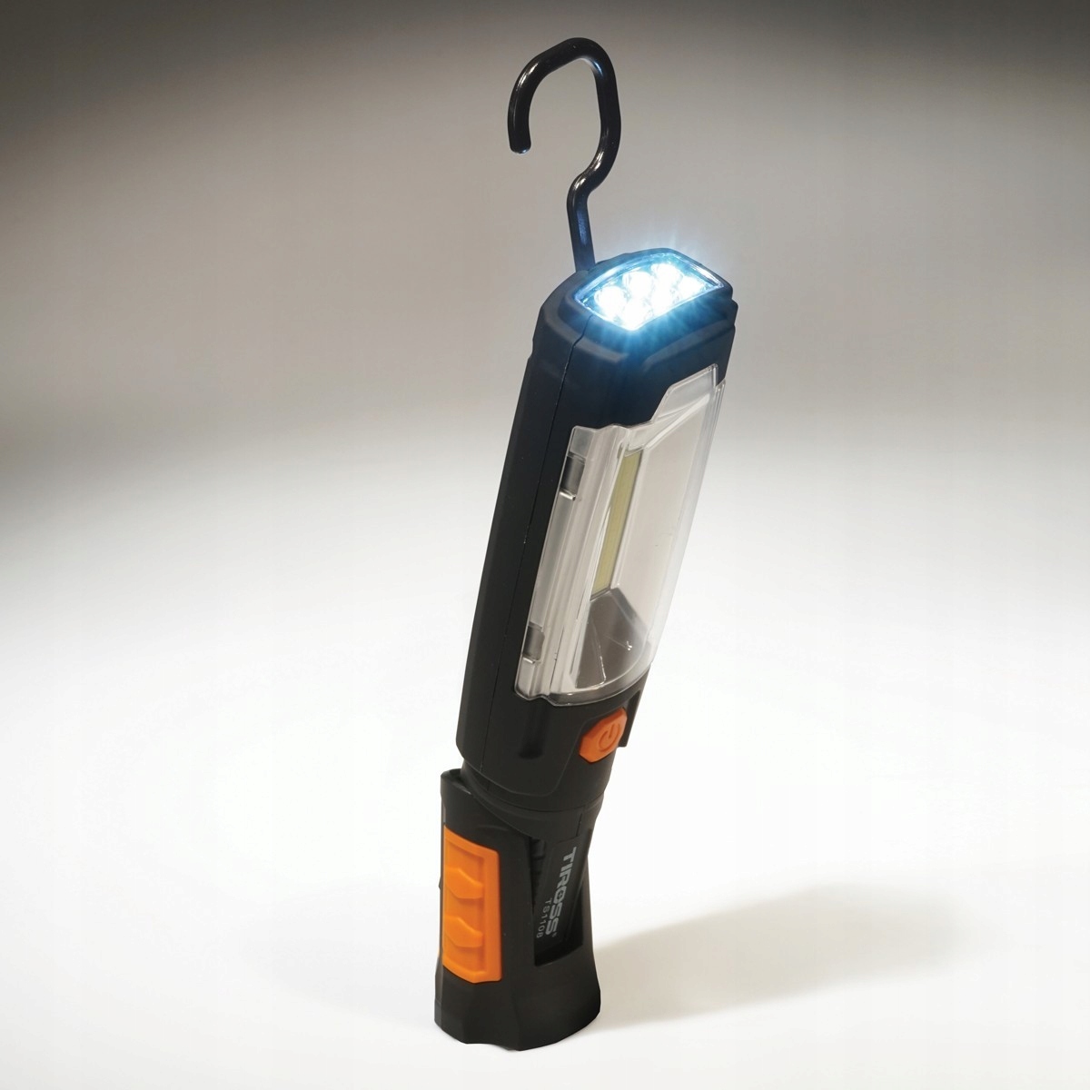 Удобная лампа для мастерской tiross TS-1108 с мощной светодиодной лампой COB 3 Вт он излучает холодный свет, идеально освещающий закоулки под капотом автомобиля.
