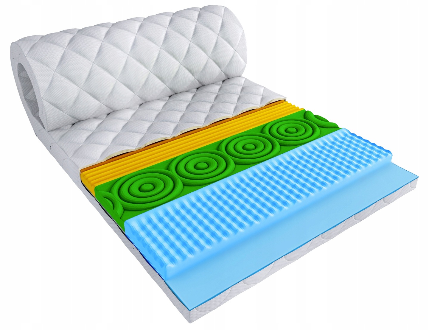Przedstawione zdjęcia materacy są zdjęciami poglądowymi. Kolory pianek przedstawionych, wzór pianki profilowanej oraz wzory pikowania pokrowca na zdjęciu poglądowym mogą się różnić, jednak właściwości materaca pozostają bez zmian