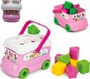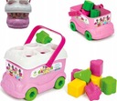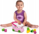 W zestawie znajduje się 1 Autobus -pojemnik na klocki z przykrywką oraz 9 kolorowych klocków do wkładania w wycięte otwory w pokrywie.