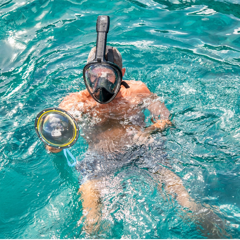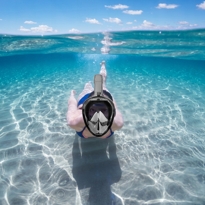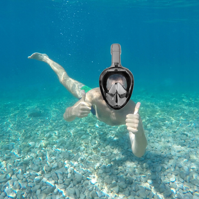 Nurkowanie to idealne rozwiązanie dla osób, które świetnie potrafią pływać. Maska jest niesamowicie wygodna oraz pozwala oddychać zarówno ustami jak i nosem podczas zanurzenia. Powierzchnia maski zapewnia aż 180° widoczność co daje ci niesamowicie szeroki kąt widzenia. Na czole maski możesz zamontować kamerkę np. gopro co sprawi, że nawet najkrótsze zanurzenia będziesz mógł uwiecznić na swojej karcie pamięci.