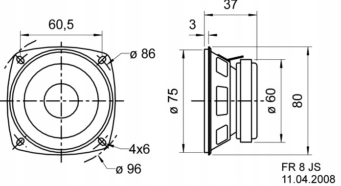 Rozstaw otworów na śruby po przekątnej 85 mm