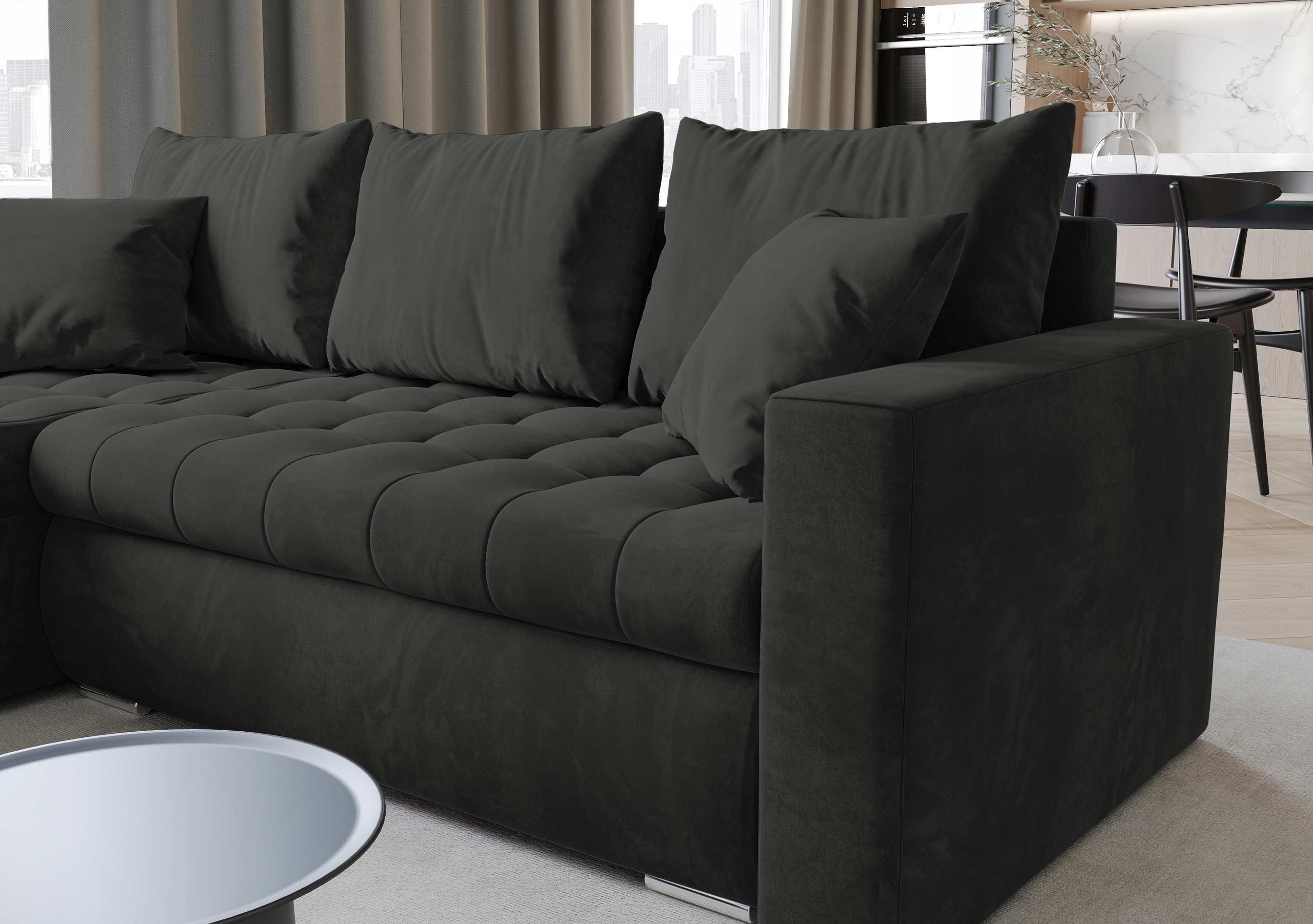 Наш современный уголок для гостиной LUIS-это не только место для сидения, но и отличное решение для неожиданных гостей, благодаря встроенной функции сна. Теперь, вы всегда будете готовы переночевать гостей в кратчайшие сроки, не отказываясь от комфорт.