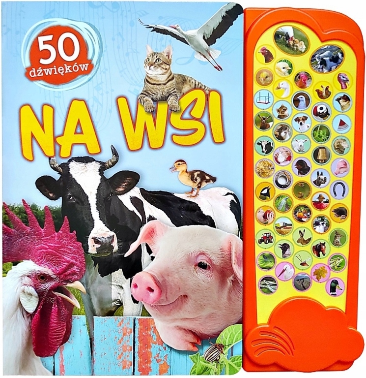 Książeczka sensoryczna - zawiera ELEMENTY DŹWIĘKOWE. Wspiera wszechstronny rozwój dziecka – pobudza ZMYSŁY WZROKU, DOTYKU I SŁUCHU. Prezentuje aż 50 DŹWIĘKÓW. Zawiera proste WIERSZYKI o zwierzętach, maszynach rolniczych, budynkach i innych ążka zabiera małych czytelników w niezapomnianą PODRÓŻ DO GOSPODARSTWA WIEJSKIEGO. Dzieci znajdą w niej proste WIERSZYKI o tym, co słychać w kurniku, w oborze, na polu, w ogrodzie czy nad stawem. Wyróżnikiem publikacji jest aż 50 różnorodnych DŹWIĘKÓW. Dzięki niej maluch dowie się, jakie dźwięki wydają gęś, wróbel, krowa, pasikonik czy kombajn i traktor. Starannie dobrane ZDJĘCIA charakteryzują się ŻYWĄ KOLORYSTYKĄ.Książka :działa na RÓŻNE ZMYSŁY: WZROK, DOTYK, SŁUCHzapoznaje z DŹWIĘKAMIrozwija WYOBRAŹNIĘwzbogaca SŁOWNICTWO 50 dźwięków Seria książeczek SENSORYCZNYCH.