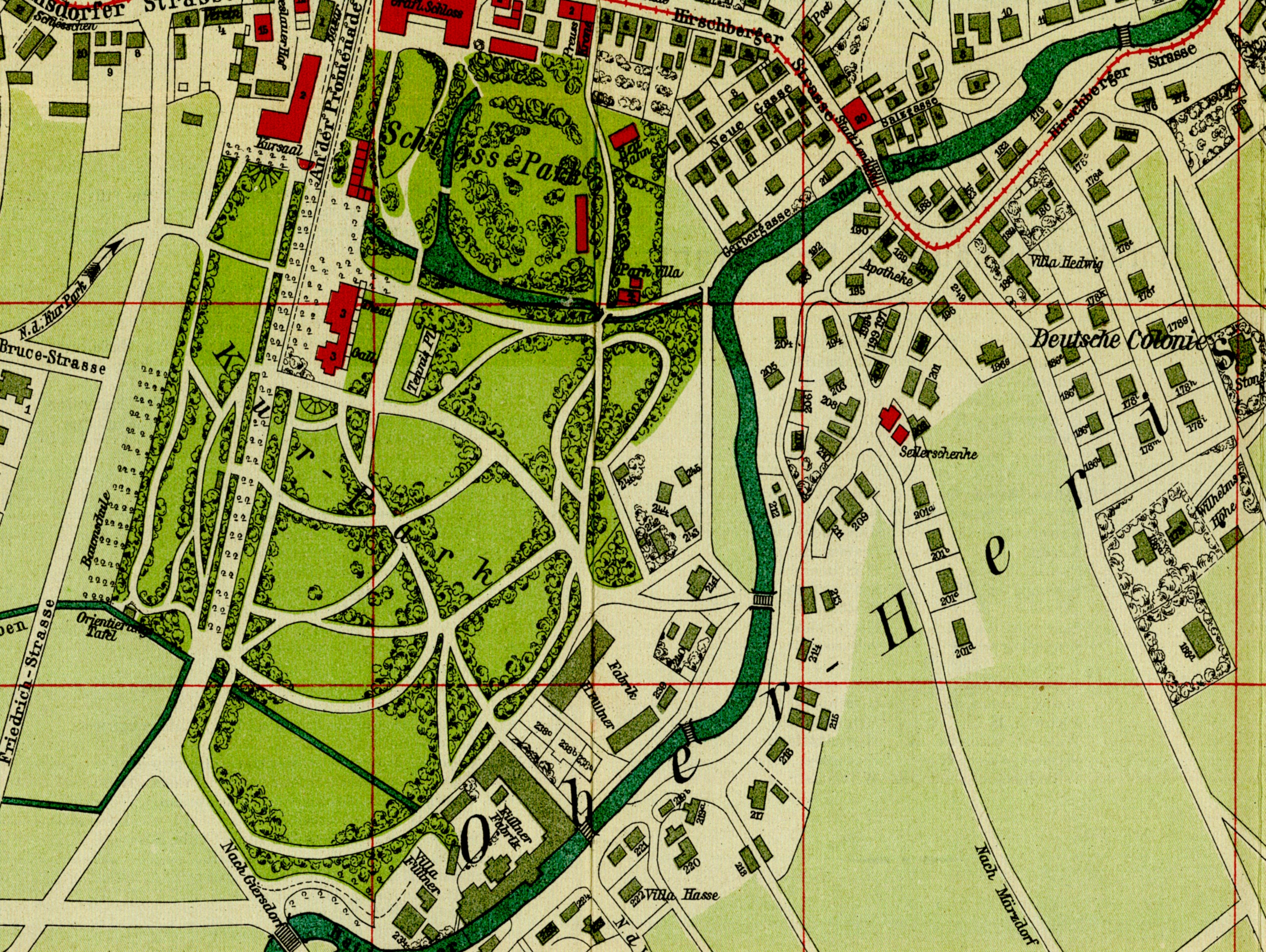 Plan von Bad Warmbrunn und dem angrenzenden Gebiet von Herischdorf :