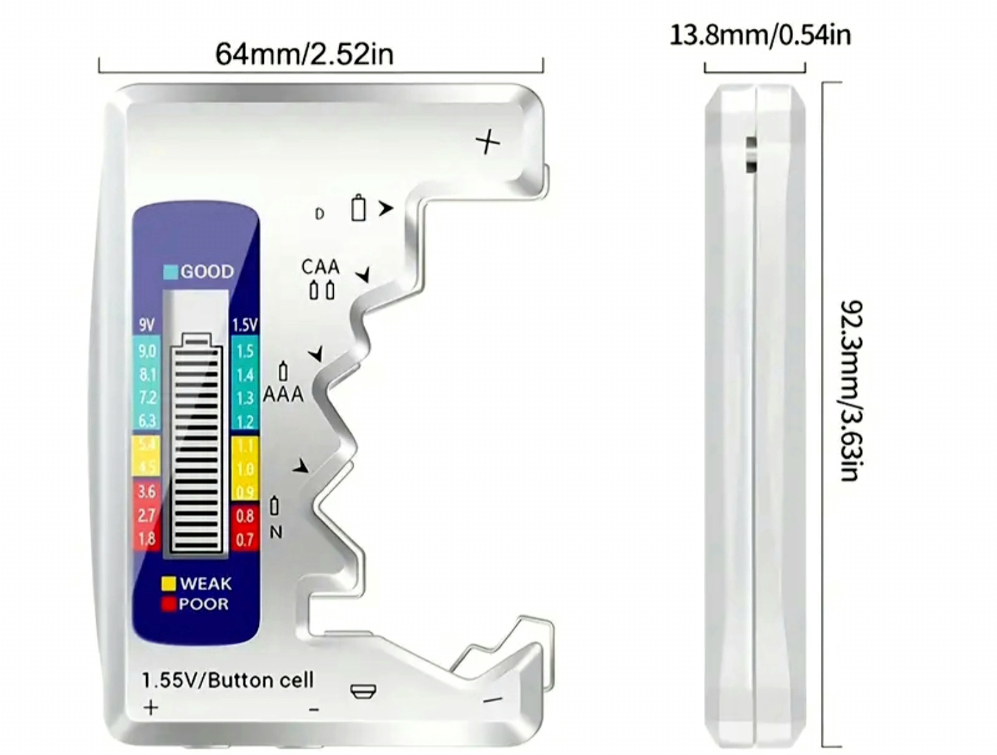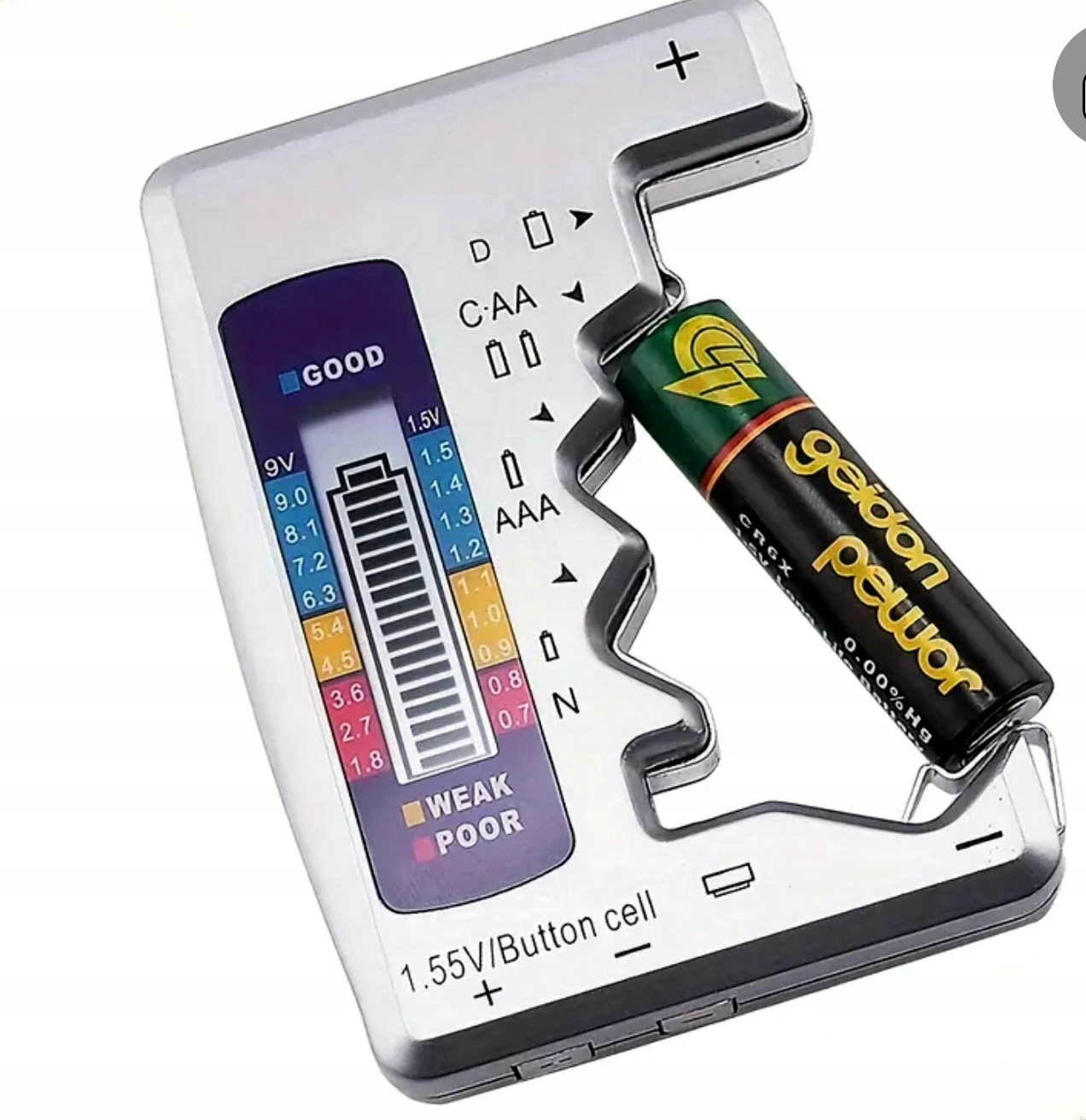 2. Поддержка различных типов батарей: поддержка типа D, типа C, батареи AA, батареи AAA, типа N, кнопочная батарея 1,5 В и т. д.