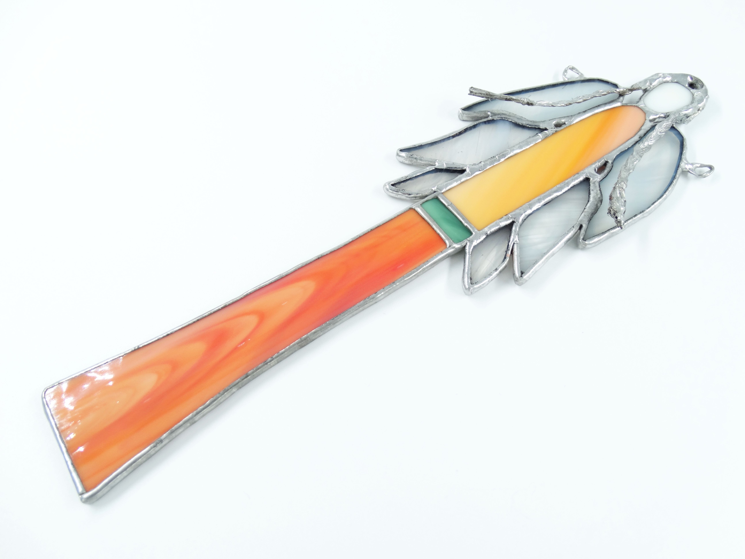 Aniołek wykonany został w technice Tiffany'ego ze szkła Spectrum. Szkło Spectrum jest to wysokiej jakości szkło witrażowe, którego kawałki mają niepowtarzalną barwę i zmienną fakturę.