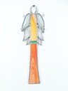 Kolory szkła: żółty oraz pomarańczowy nieprzezierny, zielony nieprzezierny, biały częściowo przezierny, biały nieprzezierny. Wymiary aniołka (szer. x wys.): 7cm x 23,5cm.