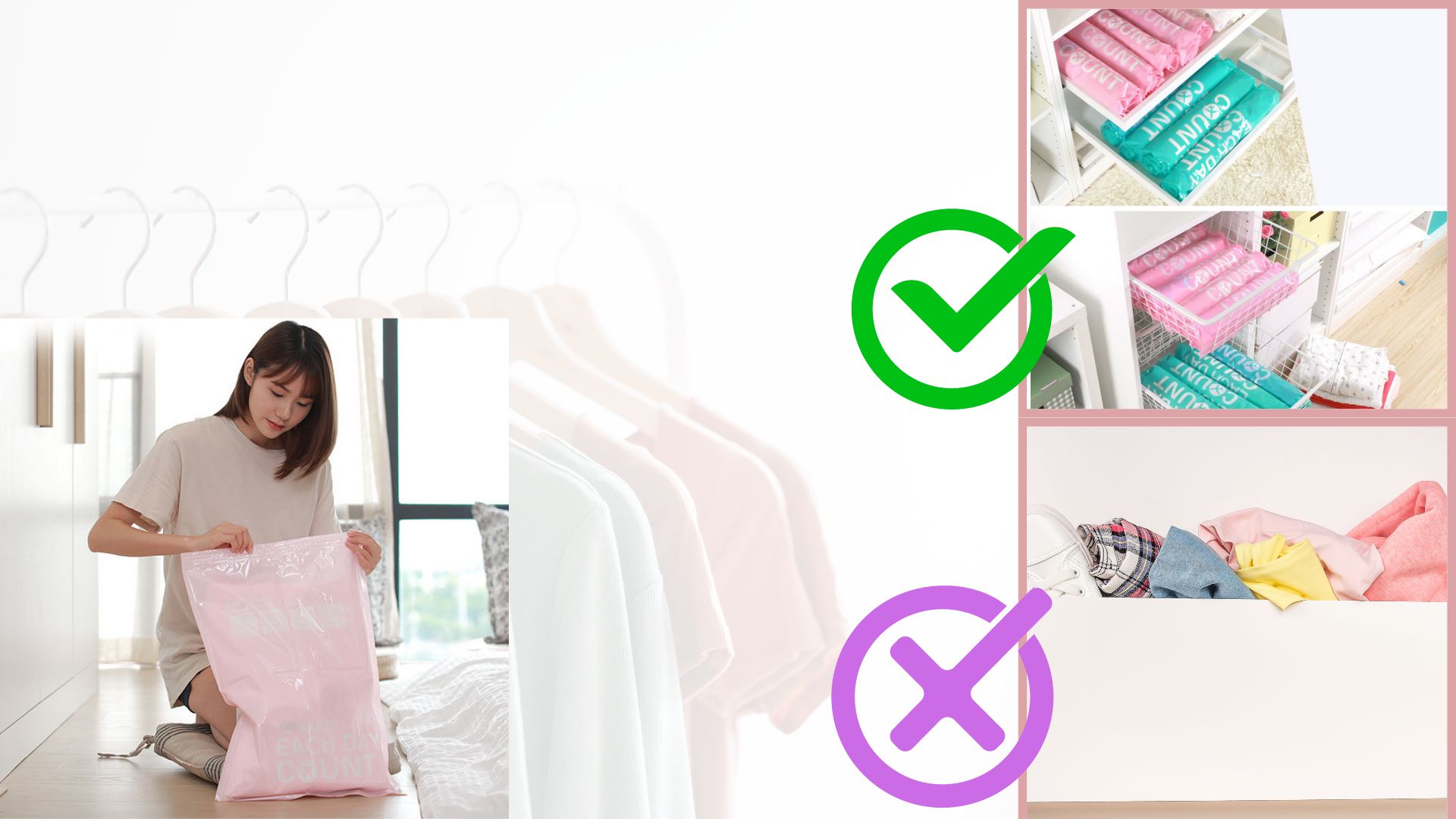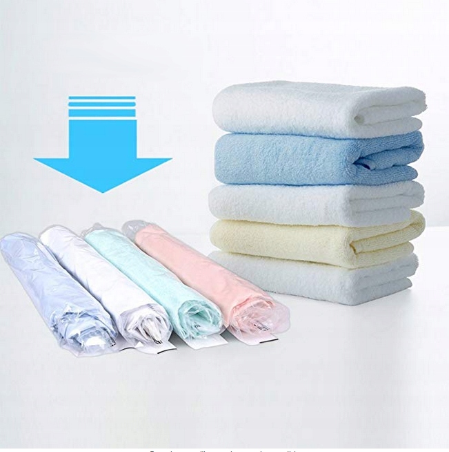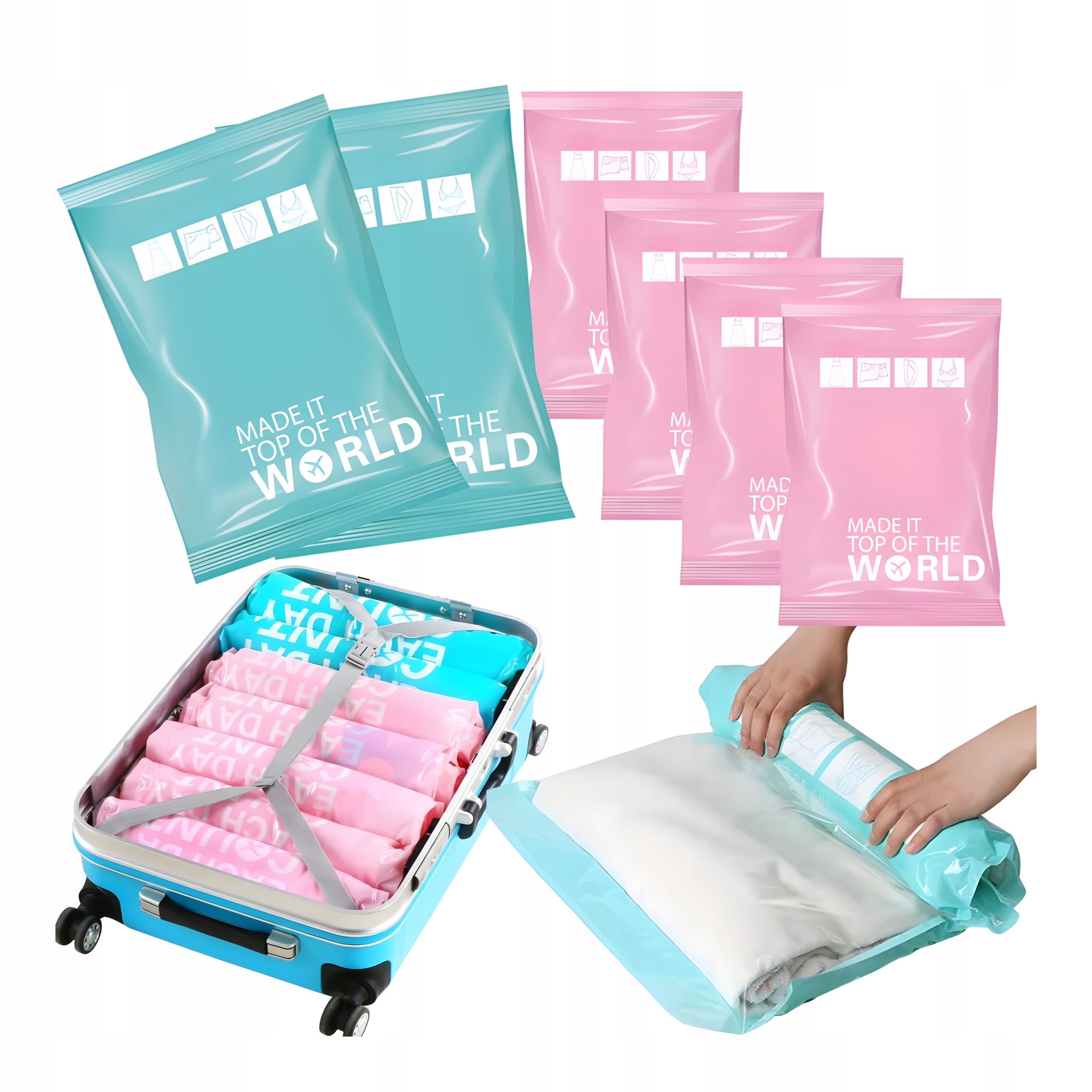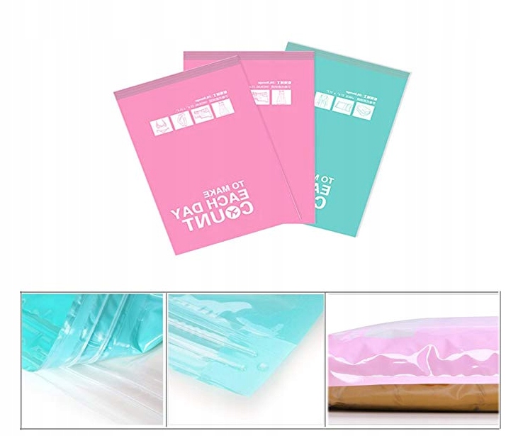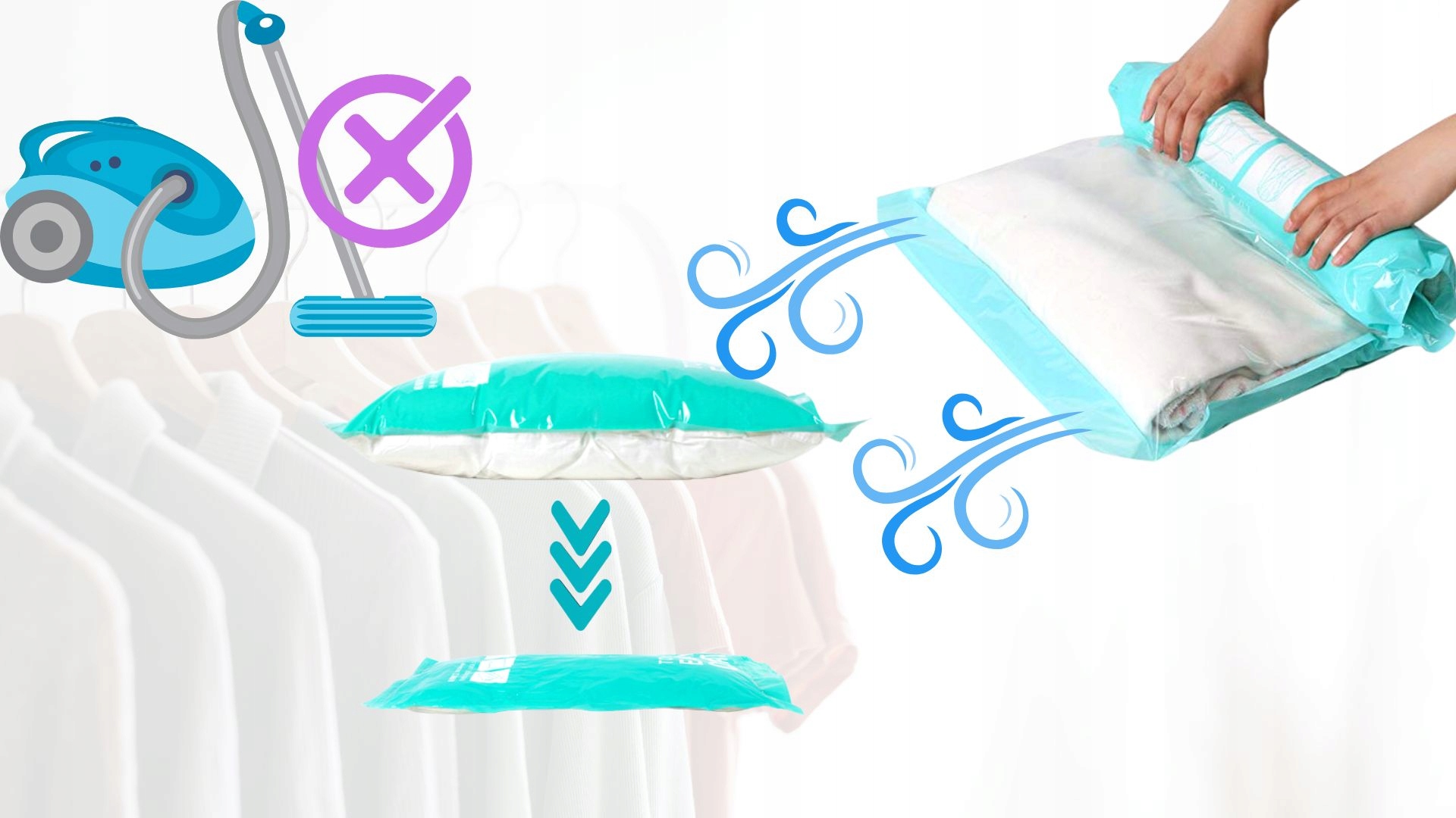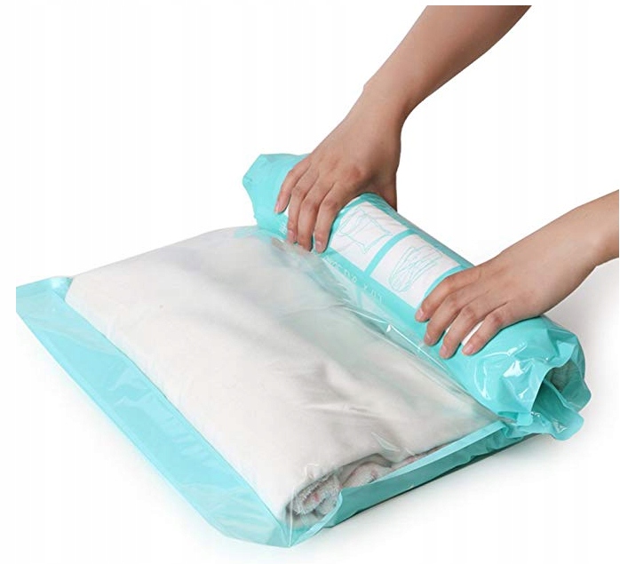 Powietrze wyciskane jest na zewnątrz poprzez rolowanie worka, zwijanie go, nie potrzebny jest odkurzacz jak przy tradycyjnych workach próżniowych