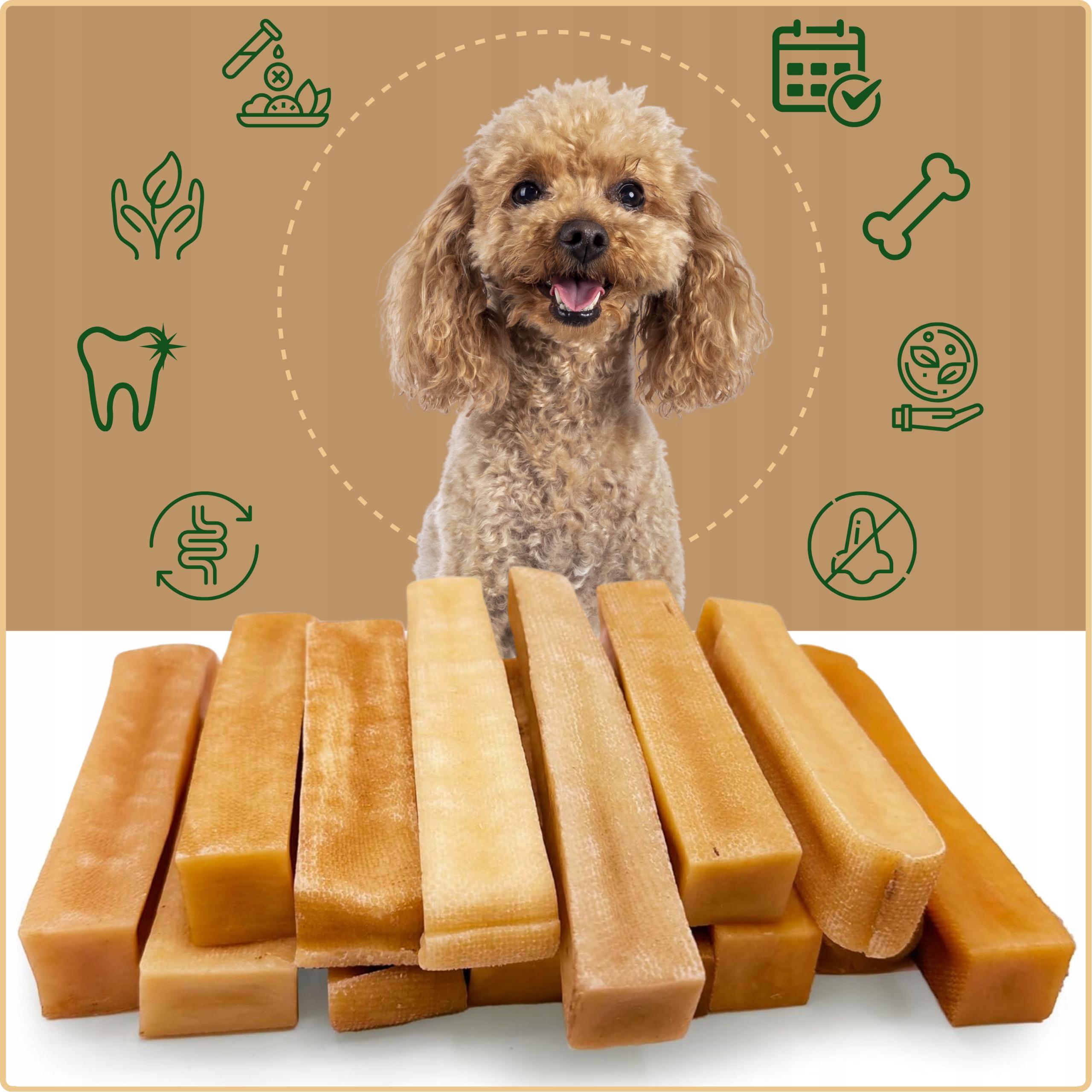 Жевательные резинки изготовлены вручную по традиционной рецепты высоко в Гималаях из молока коров, пасущихся на склонах гор. Молоко полезнее, а следовательно, пищевая ценность для собаки намного выше, чем у конкурирующих продуктов машинное производство в Европе.