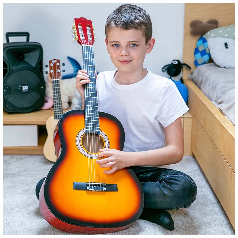 BD 36 to solidnie wykonana, bardzo ładnie brzmiąca i czysto strojąca ✅ gitara klasyczna typu 3/4, która dzięki pomniejszonemu, niepełnowymiarowemu korpusowi i miękkim, nylonowym strunom niemęczącym rąk jest idealna do ćwiczeń, szczególnie dla małych dzieci rozpoczynających naukę gry na tym instrumencie, a także osób bardziej zaawansowanych chcących rozwijać i realizować swoje muzyczne pasje.