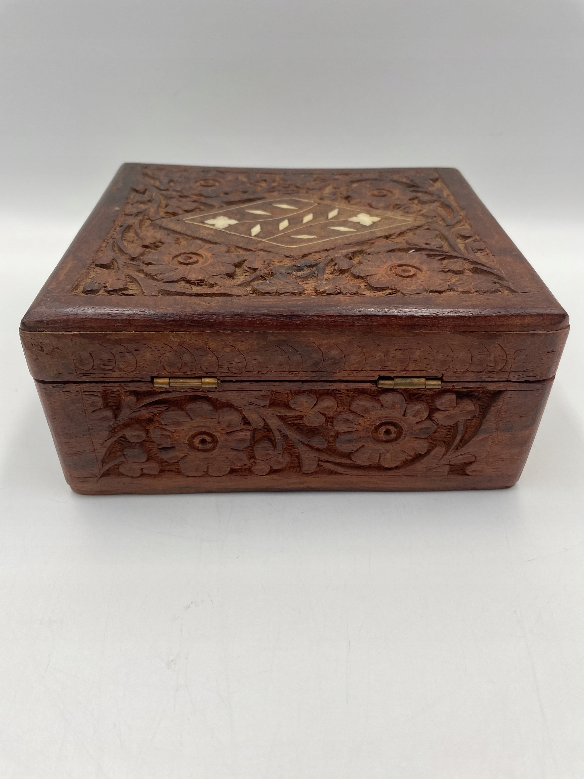 Drewniana rzeźbiona Szkatułka