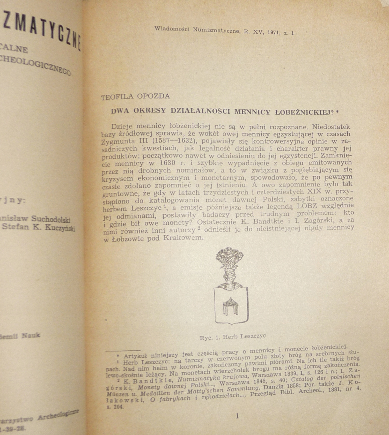 WIADOMOŚCI NUMIZMATYCZNE -1971/1 - Dwa okresy działalności mennicy łobżenickiej – Teofil Opozda