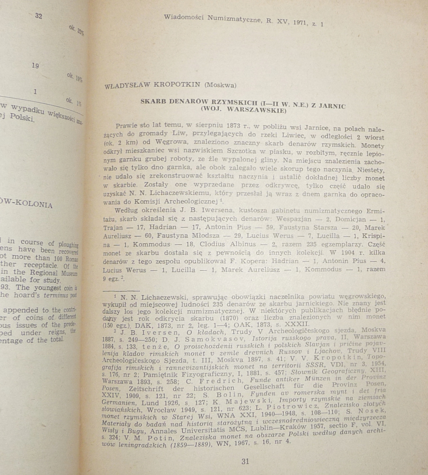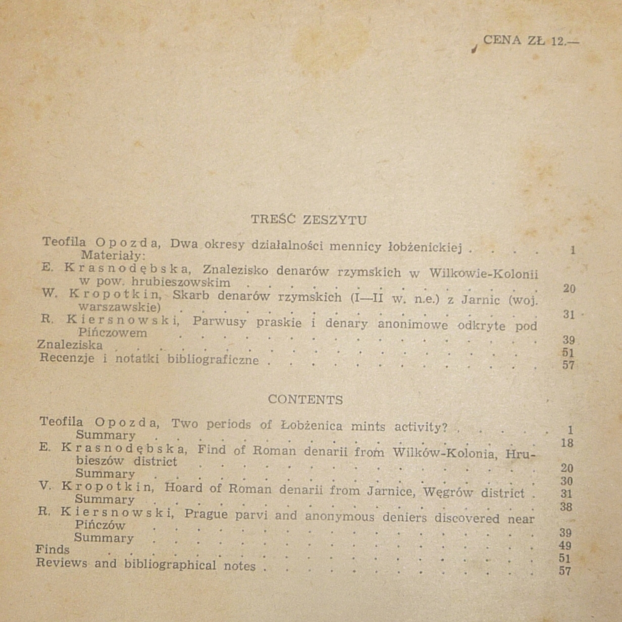 W OFERCIE – Wiadomości Numizmatyczne Zeszyt 1(55), Polskie Towarzystwo Archeologiczne, Warszawa 1971. 64 strony, miękka okładka, format 16,5x23,5 cm, stan dobry [ niewielkie przebarwienia zewnętrznej strony okładki ][ Dwa okresy działalności mennicy łobżenickiej – Teofil Opozda ( 19 str.), Znalezisko denarów rzymskich w Wilkowie –Kolonii , pow. hrubieszowski – E. Krasnodębska, Skarb denarów rzymskich w Jarnie –woj. warszawskie – W. Kropotkin, Parwusy praskie i denary anonimowe odkryte pod Pińczowem – R.Kiersnowski, ZNALEZISKA, recenzje książek…][ NUMIZMATYKA ][ ŁOBŻENICA ][ ARCHEOLOGIA ]2911C