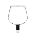 Niezwykły kieliszek, który pozwala na rozpoczęcie konsumpcji wina od razu z butelki. Kieliszek zamiast nóżki posiada specjalną silikonową zatyczkę, która nie pozwoli na rozlewanie się trunku. Bardzo użyteczny gadżet, który można stosować jako śmieszne urządzenie na imprezy, wygodne rozwiązanie na wieczory z winem lub element ułatwiający degustację.