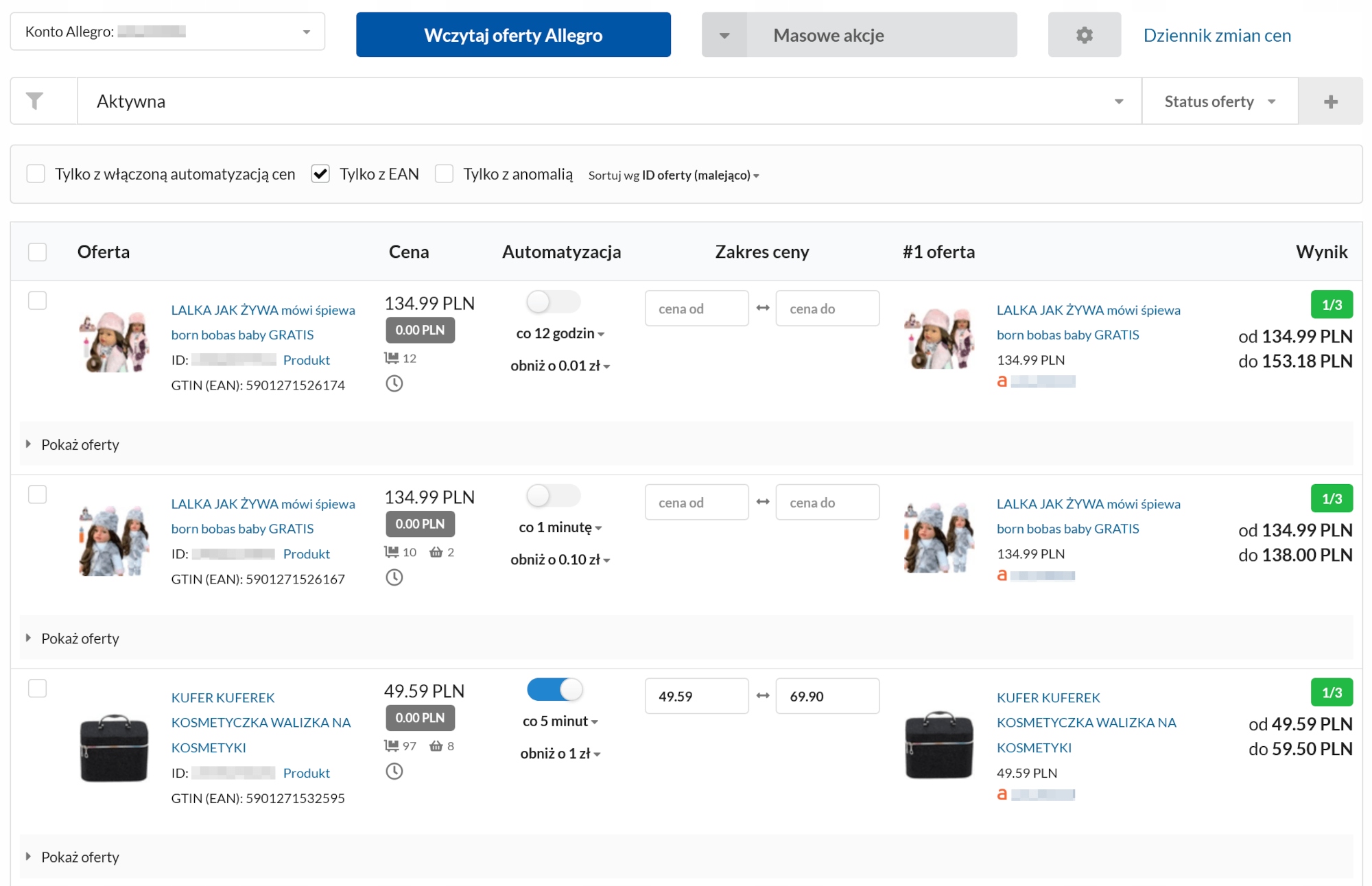 Вы покупаете годовой доступ к инструменту конкурента цен Allegro Essential продавца позволяет конкуренции.