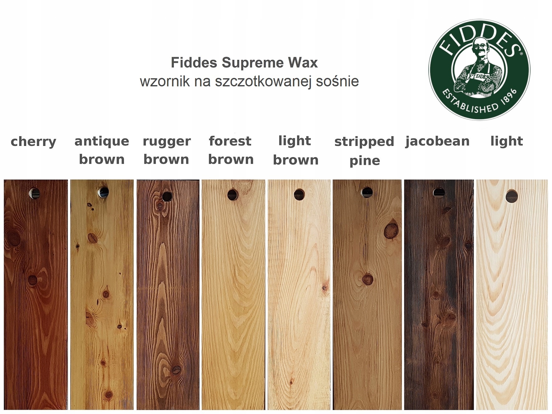 Woski Supreme Wax to jeden z sztandarowych produktów firmy Fiddes, powszechnie stosowany przez antykarzy oraz producentów mebli drewnianych w rustykalnym czy antycznym stylu. Produkt to mieszanina najwyższej jakości naturalnych wosków przeznaczonych do pielęgnacji i konserwacji drewna surowego, jak również wcześniej wykończonego olejem, podkładem szelakowym, glazurą, politurą, farbą kredową czy nawet lakierem. Wosk Fiddes Supreme Wax, zawierający m.in. wosk pszczeli, wosk carnauba z dodatkiem rozcieńczalnika pozbawionego toluenu, tworzy łatwą do nanoszenia pastę dostępną w wersji bezbarwnej oraz w tradycyjnie stosowanych na drewnie woskowanym kolorach. Powierzchnia drewniana wykończona woskiem nabiera naturalnego piękna, "starego" wyglądu i szlachetności niedostępnej dla materiałów lakierniczych. Wosk - w zależności od ilości naniesienia oraz stopnia polerowania - tworzy powłokę matową bądź o silnym, aksamitnym połysku. Pozwala uzyskać piękny wygląd drewna zarówno na drewnie gładkim, jak też na elementach szczotkowanych czy strukturyzowanych.