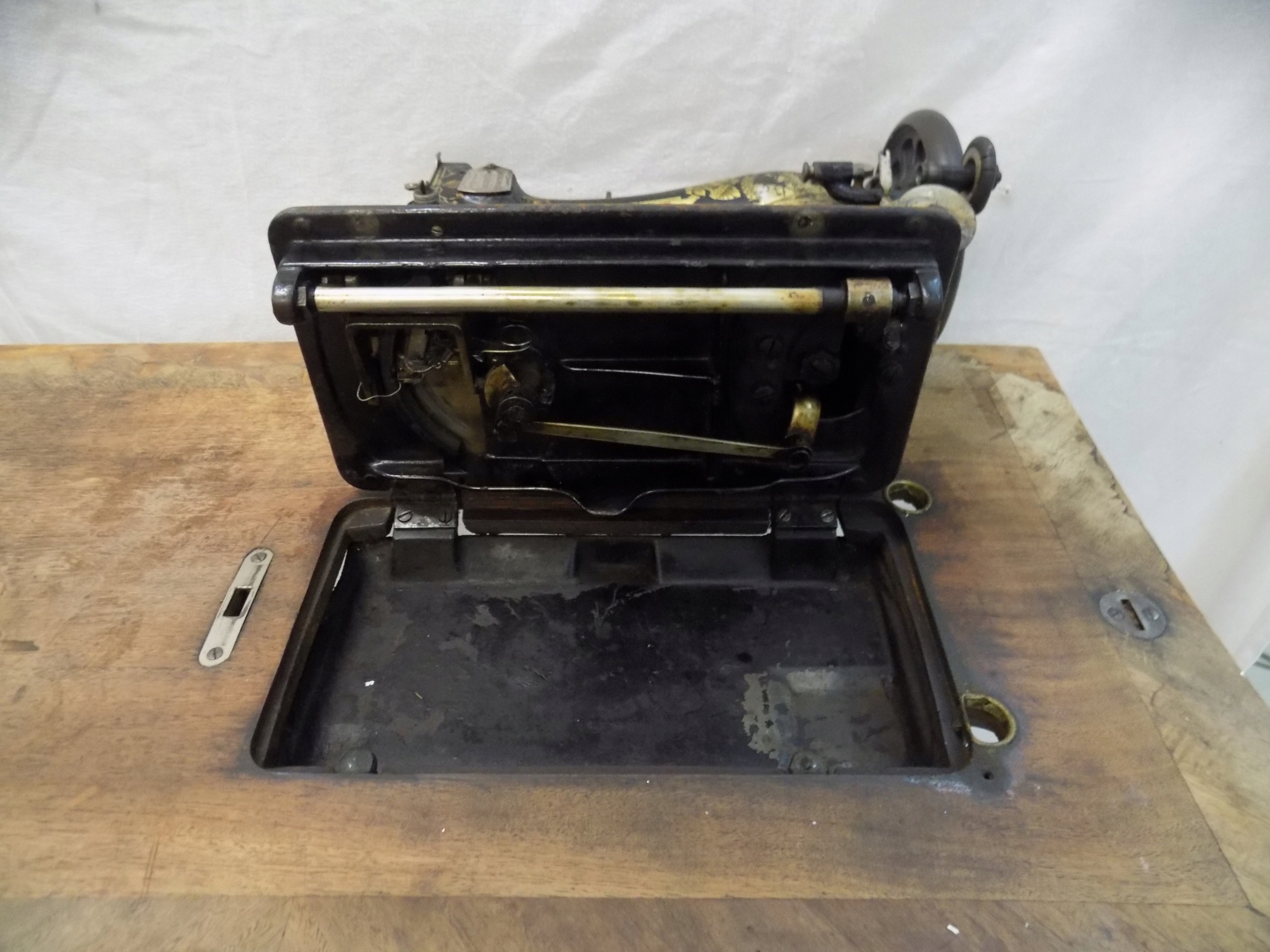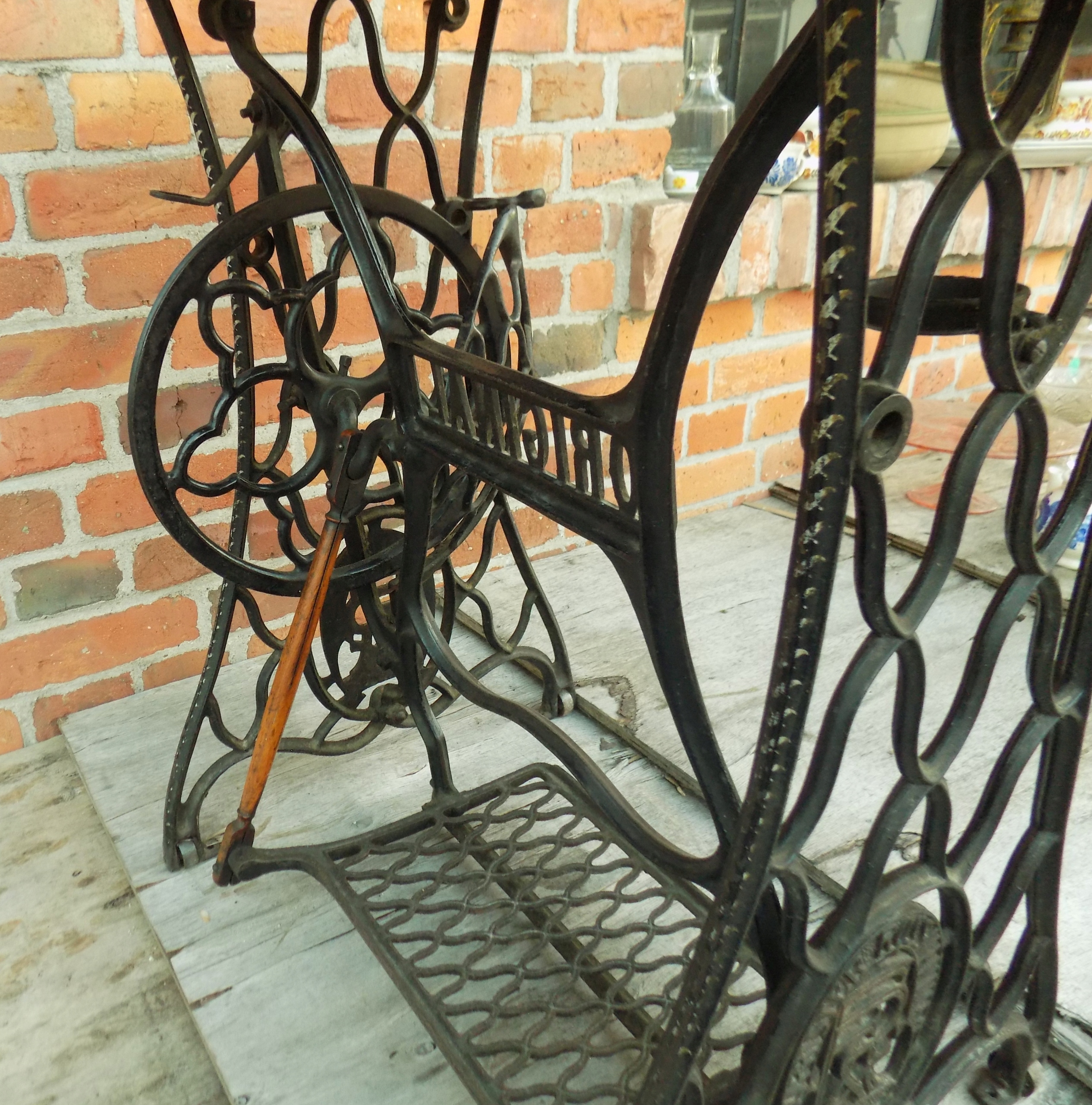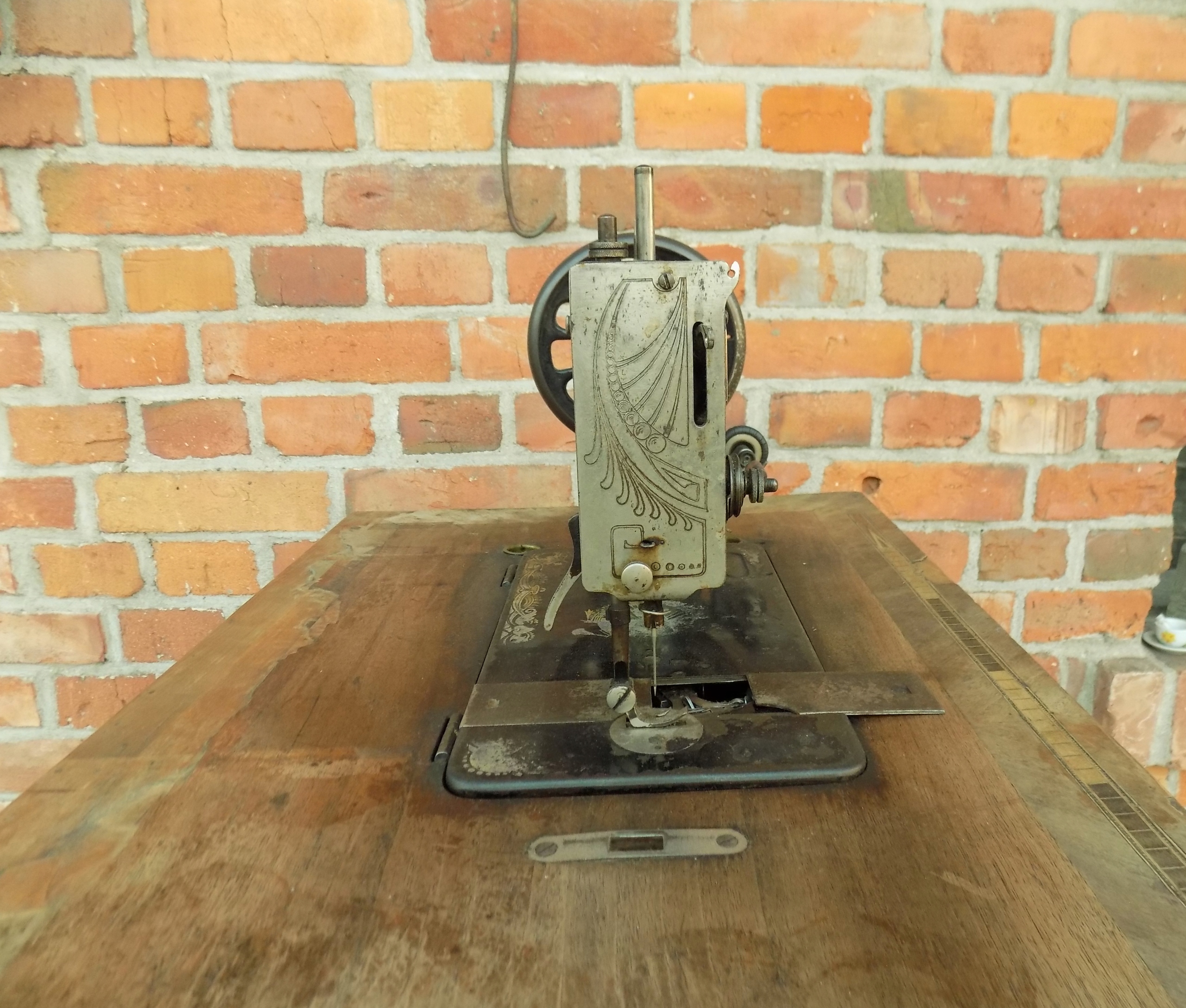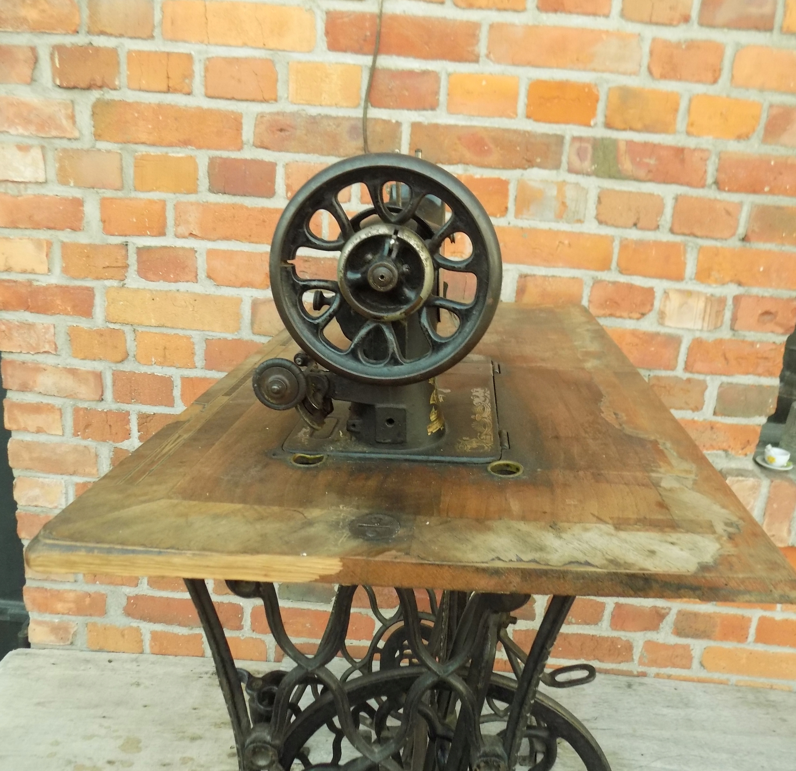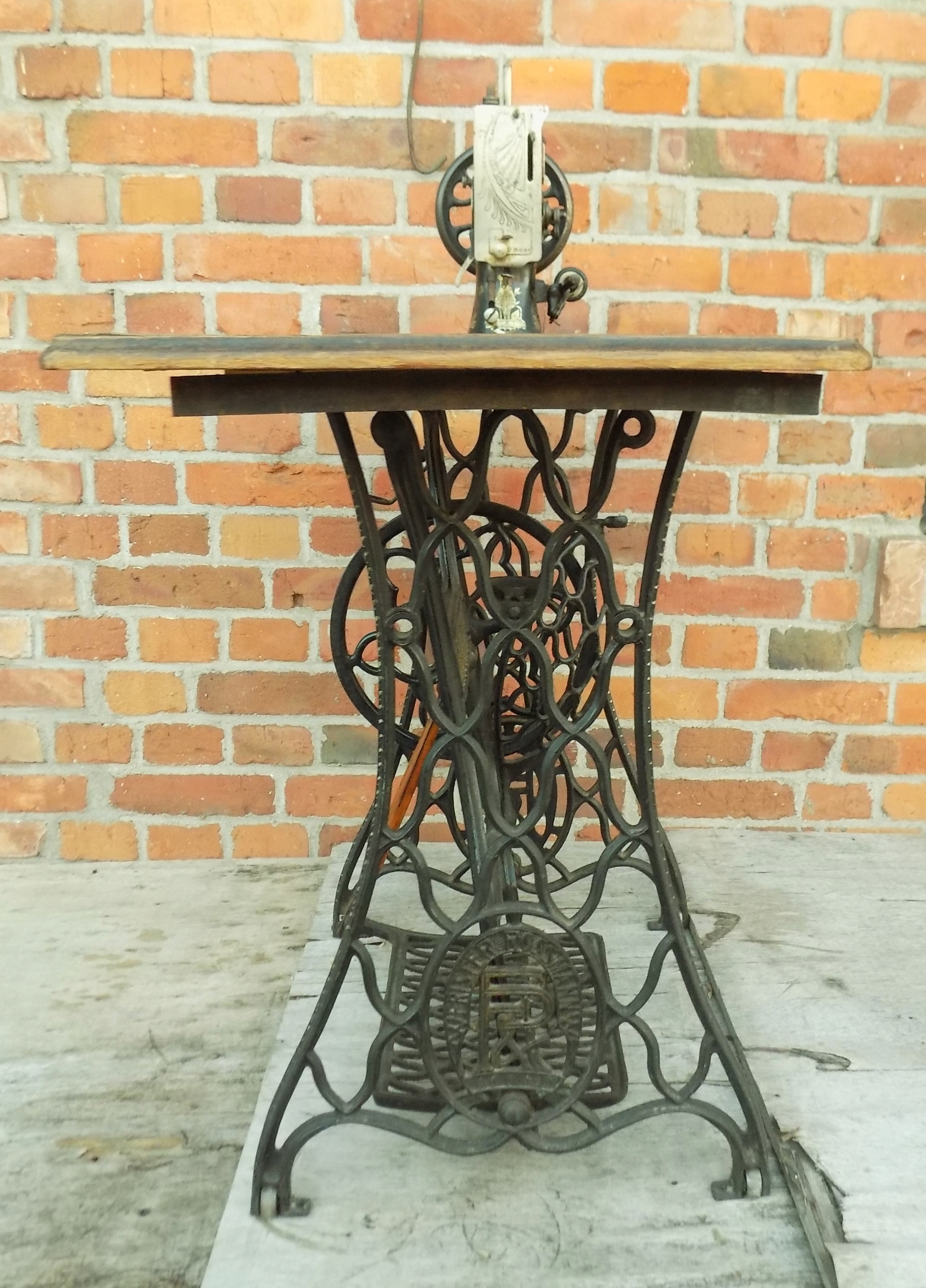 Zabytkowa maszyna do szycia Original marki Frister & Rossmann na podbudowie żeliwnej. Wymiary; wys. 97(75) x 85 x 46 cm. Przedmiot w stanie pokazanym na zdjęciach.